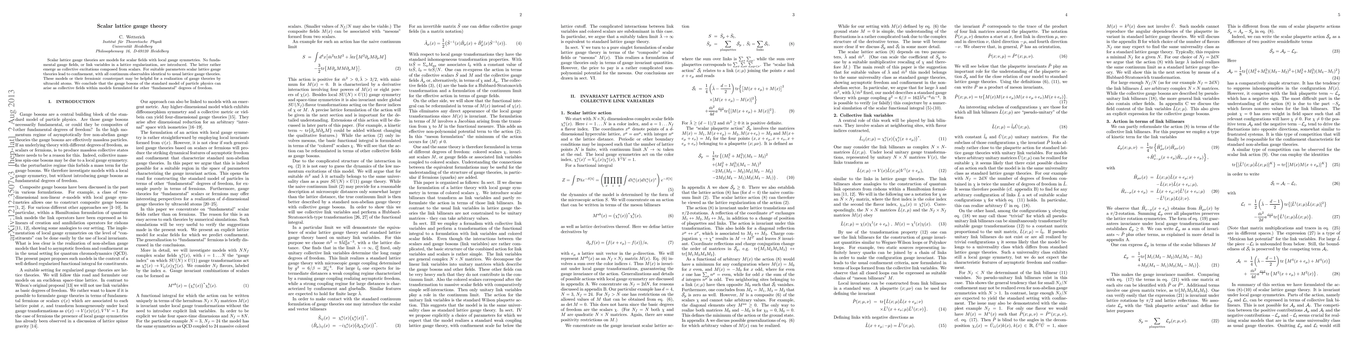 Scalar lattice gauge theories model scalar fields with local gauge symmetries without introducing fundamental gauge fields, instead deriving them as collective excitations from scalars. These models can achieve confinement and produce continuum observables identical to traditional lattice gauge theories, suggesting potential applications in ultracold atom systems.