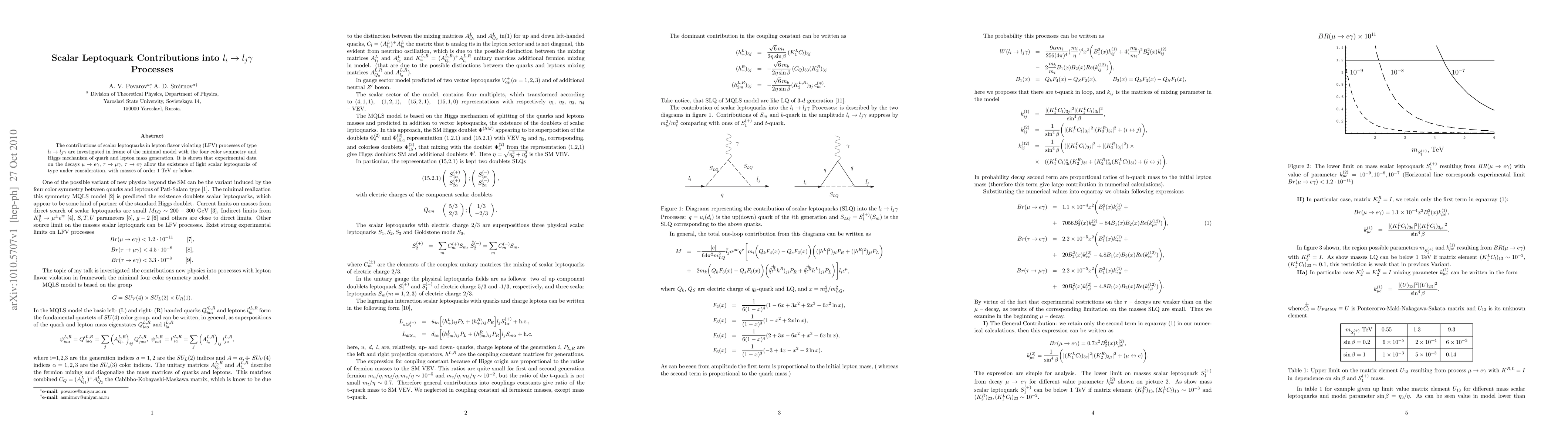 This paper investigates scalar leptoquark contributions to lepton flavor violating processes $l_i\to l_j\gamma$ within a minimal model with four-color symmetry. It finds that experimental data on decays like $\mu\to e \gamma$ support the existence of light scalar leptoquarks with masses around 1 TeV or less.