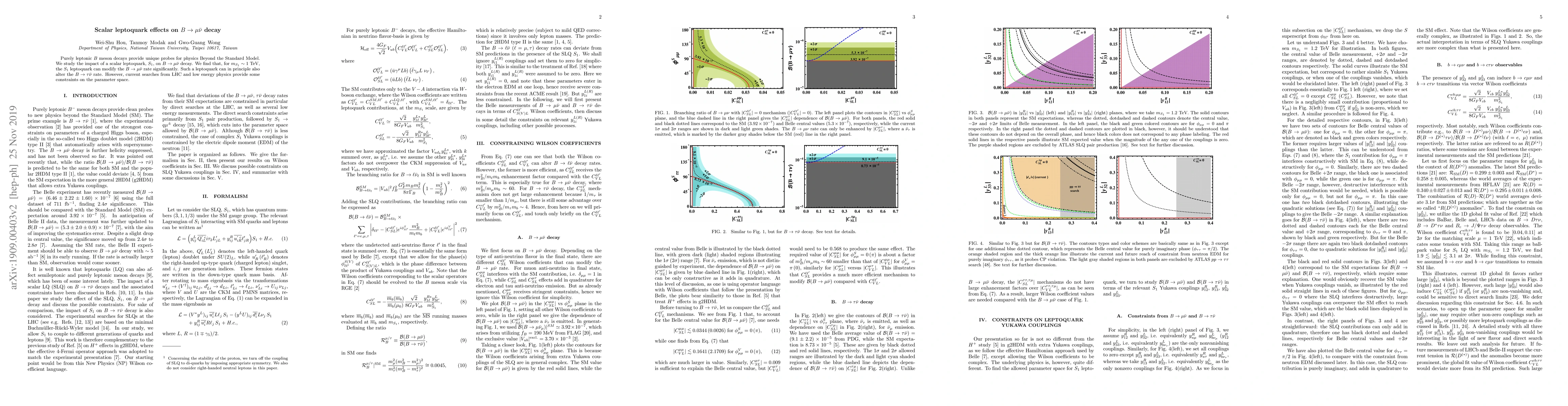 The study investigates the impact of a scalar leptoquark ($S_1$) on $B \to \mu \bar\nu$ decay using an effective Hamiltonian approach, comparing with Belle measurements and Standard Model expectations.