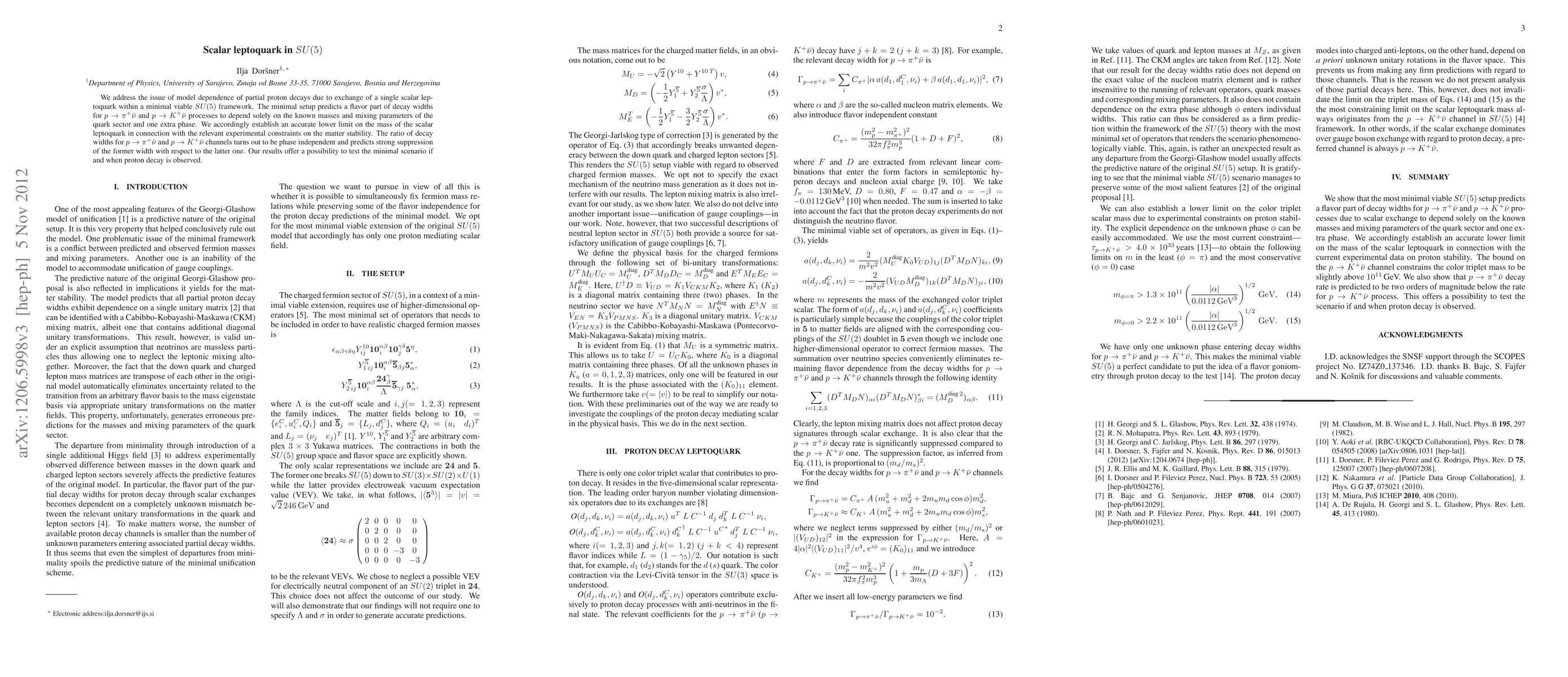 This paper investigates the implications of a scalar leptoquark within a minimal SU(5) framework, establishing a lower mass limit for the leptoquark based on quark sector parameters and experimental constraints. It predicts a phase-independent ratio of proton decay widths, showing strong suppression for channels with anti-neutrinos, offering a testable scenario if proton decay is observed.