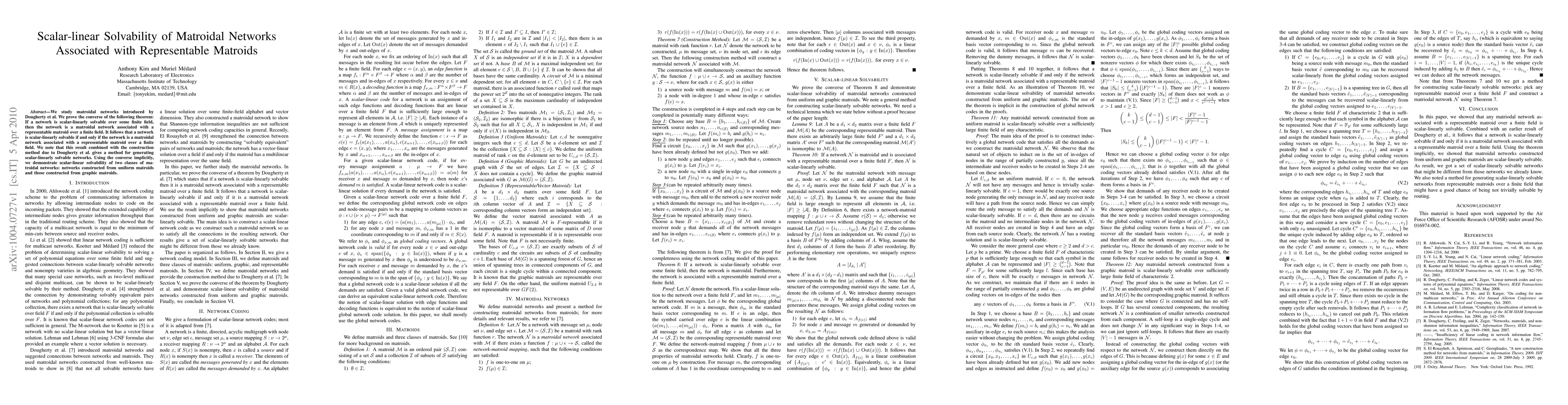 We study matroidal networks introduced by Dougherty et al. We prove the converse of the following theorem: If a network is scalar-linearly solvable over some finite field, then the network is a matroidal network associated with a representable matroid over a finite field. It follows that a network is scalar-linearly solvable if and only if the network is a matroidal network associated with a representable matroid over a finite field. We note that this result combined with the construction method due to Dougherty et al. gives a method for generating scalar-linearly solvable networks. Using the converse implicitly, we demonstrate scalar-linear solvability of two classes of matroidal networks: networks constructed from uniform matroids and those constructed from graphic matroids.