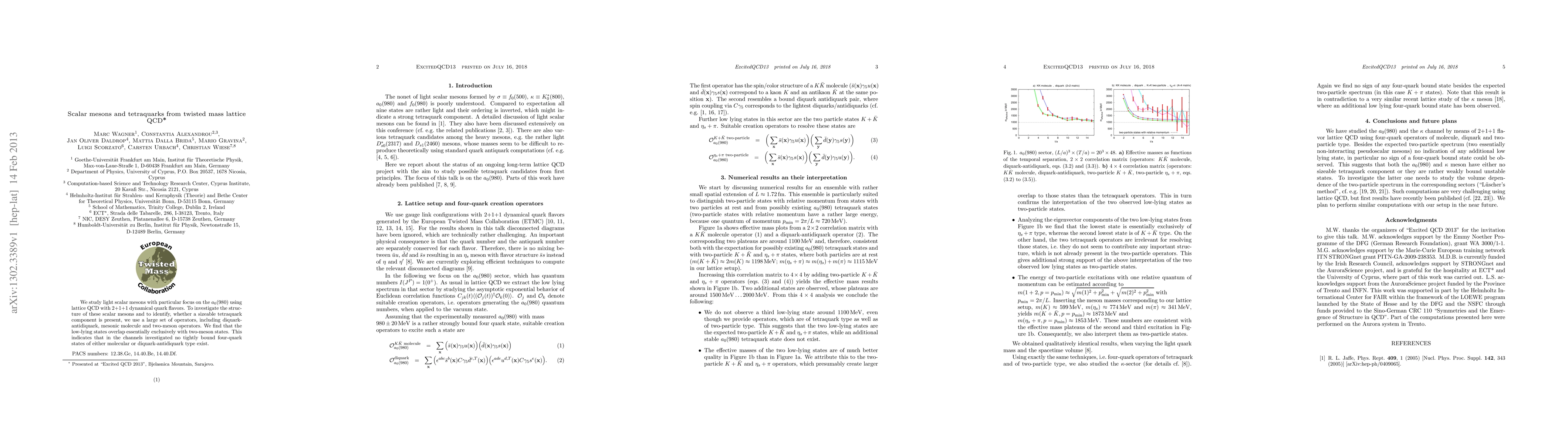 We study light scalar mesons with particular focus on the a_0(980) using lattice QCD with 2+1+1 dynamical quark flavors. To investigate the structure of these scalar mesons and to identify, whether a sizeable tetraquark component is present, we use a large set of operators, including diquark-antidiquark, mesonic molecule and two-meson operators. We find that the low-lying states overlap essentially exclusively with two-meson states. This indicates that in the channels investigated no tightly bound four-quark states of either molecular or diquark-antidiquark type exist.
