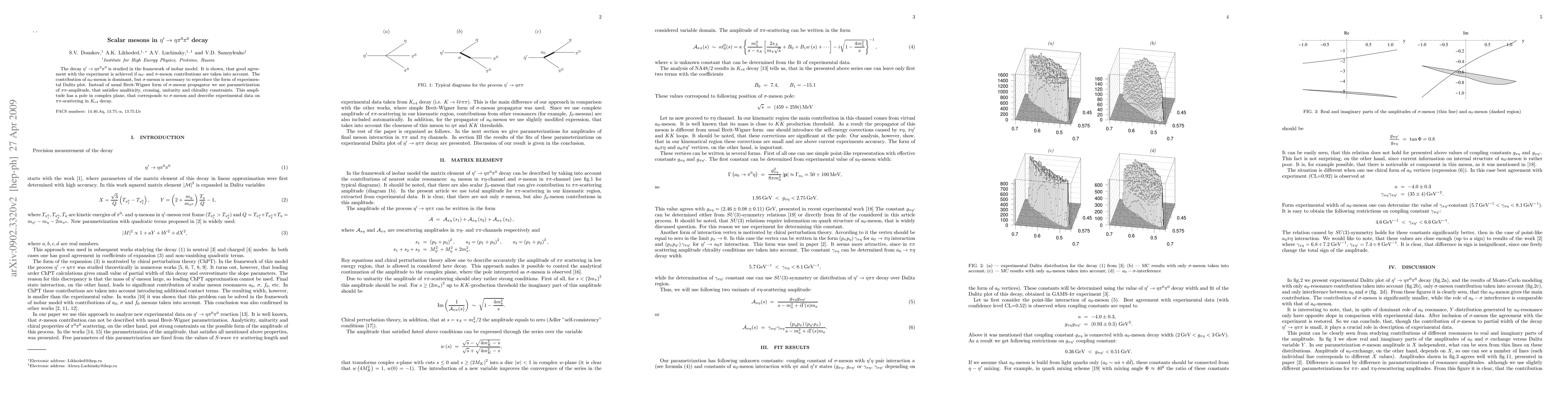 The decay $\eta'\to\eta\pi^{0}\pi^{0}$ is studied in the framework of isobar model. It is shown, that good agreement with the experiment is achieved if $a_0$- and $\sigma$-meson contributions are taken into account. The contribution of $a_0$-meson is dominant, but $\sigma$-meson is necessary to reproduce the form of experimental Dalitz plot. Instead of usual Breit-Wigner form of $\sigma$-meson propagator we use parametrization of $\pi\pi$-amplitude, that satisfies analiticity, crossing, unitarity and chirality constraints. This amplitude has a pole in complex plane, that corresponds to $\sigma$-meson and describe experimental data on $\pi\pi$-scattering in $K_{e4}$ decay.