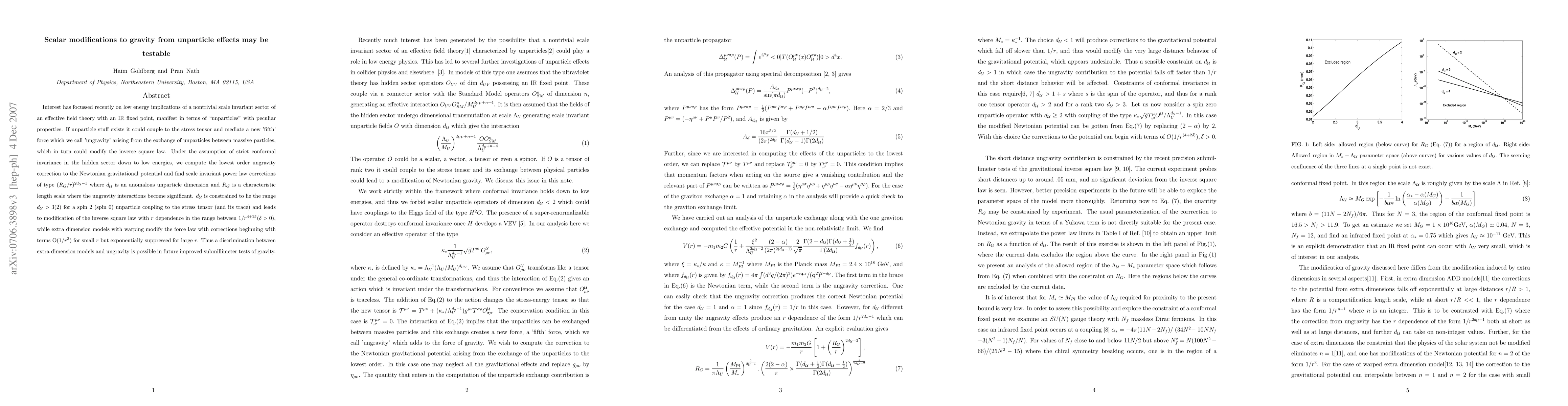 Interest has focussed recently on low energy implications of a nontrivial scale invariant sector of an effective field theory with an IR fixed point, manifest in terms of ``unparticles'' with peculiar properties. If unparticle stuff exists it could couple to the stress tensor and mediate a new 'fifth' force which we call 'ungravity' arising from the exchange of unparticles between massive particles, which in turn could modify the inverse square law. Under the assumption of strict conformal invariance in the hidden sector down to low energies, we compute the lowest order ungravity correction to the Newtonian gravitational potential and find scale invariant power law corrections of type $(R_{G}/r)^{2d_{\cal U} -1}$ where $d_{\cal U}$ is an anomalous unparticle dimension and $R_{G}$ is a characteristic length scale where the ungravity interactions become significant. $d_{\cal U}$ is constrained to lie the range $ d_{\cal U} > 3 (2)$ for a spin 2 (spin 0) unparticle coupling to the stress tensor (and its trace) and leads to modification of the inverse square law with $r$ dependence in the range between $1/r^{4+2\delta} (\delta>0)$, while extra dimension models with warping modify the force law with corrections beginning with terms O$(1/r^3)$ for small $r$ but exponentially suppressed for large $r$. Thus a discrimination between extra dimension models and ungravity is possible in future improved submillimeter tests of gravity.