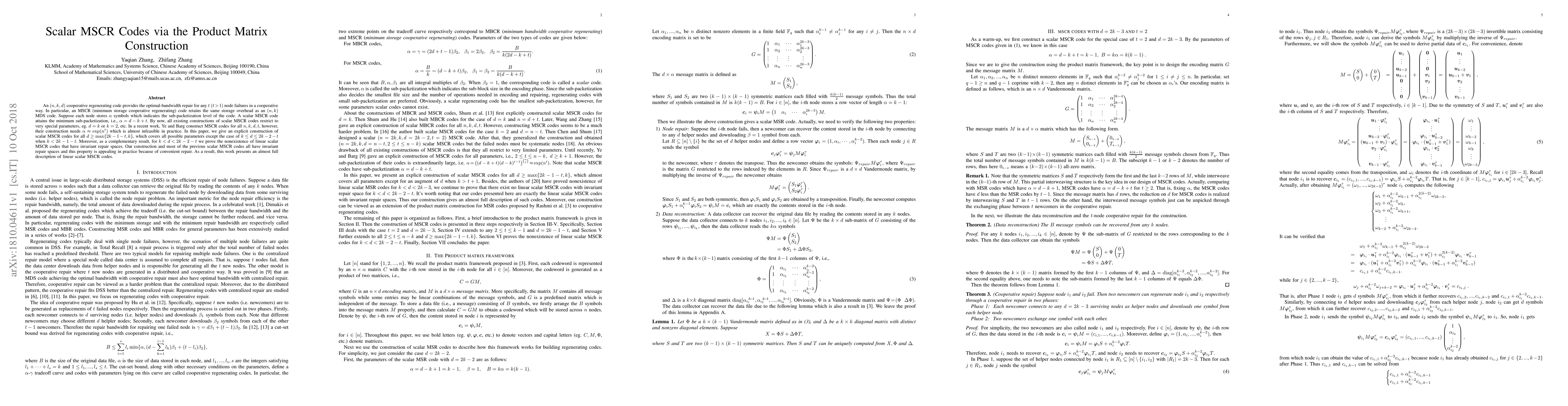 symbols which indicates the sub-packetization level of the code. A scalar MSCR