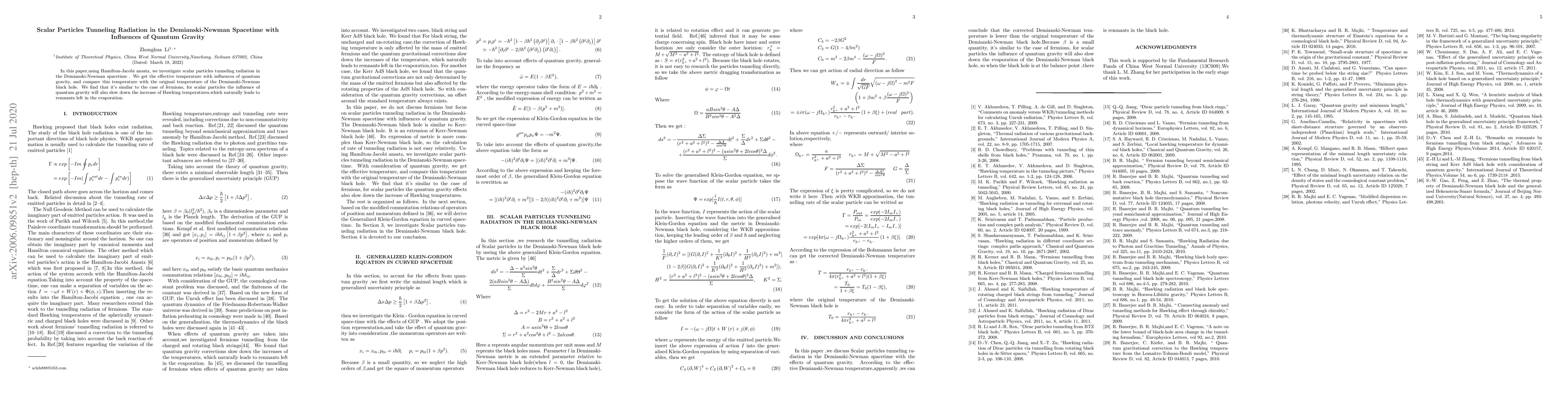 Researchers investigated scalar particle tunneling radiation in the Demianski-Newman spacetime with influences of quantum gravity, finding that it slows down Hawking temperature increases, leaving remnants during evaporation.