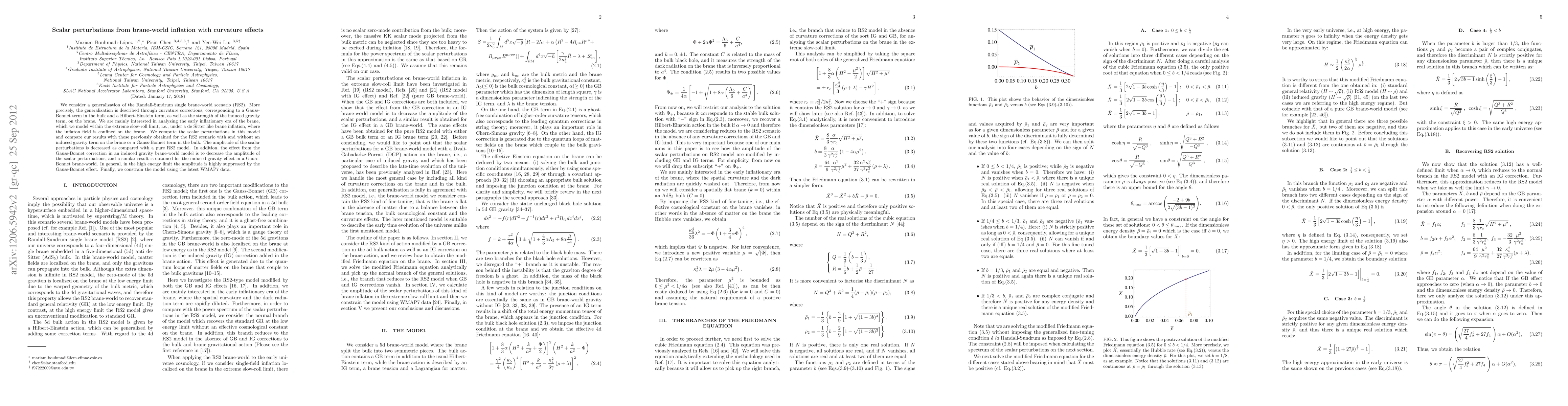 This paper explores scalar perturbations in a modified brane-world inflation model incorporating curvature corrections via Gauss-Bonnet terms and induced gravity. The study finds that these corrections significantly decrease the amplitude of scalar perturbations compared to the standard Randall-Sundrum model, with the Gauss-Bonnet effect being particularly effective in suppressing amplitudes in high energy scenarios.