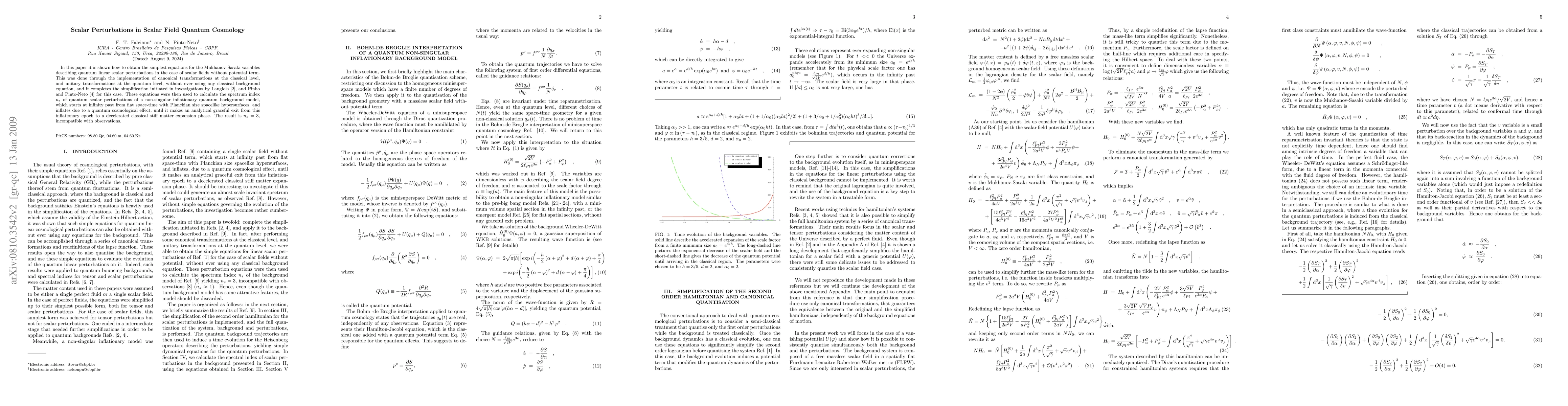 Researchers derived new equations for quantum scalar perturbations in a vacuum scenario, leading to a spectrum index of 3, which is incompatible with observations, and explored the implications for our understanding of inflationary quantum cosmology.