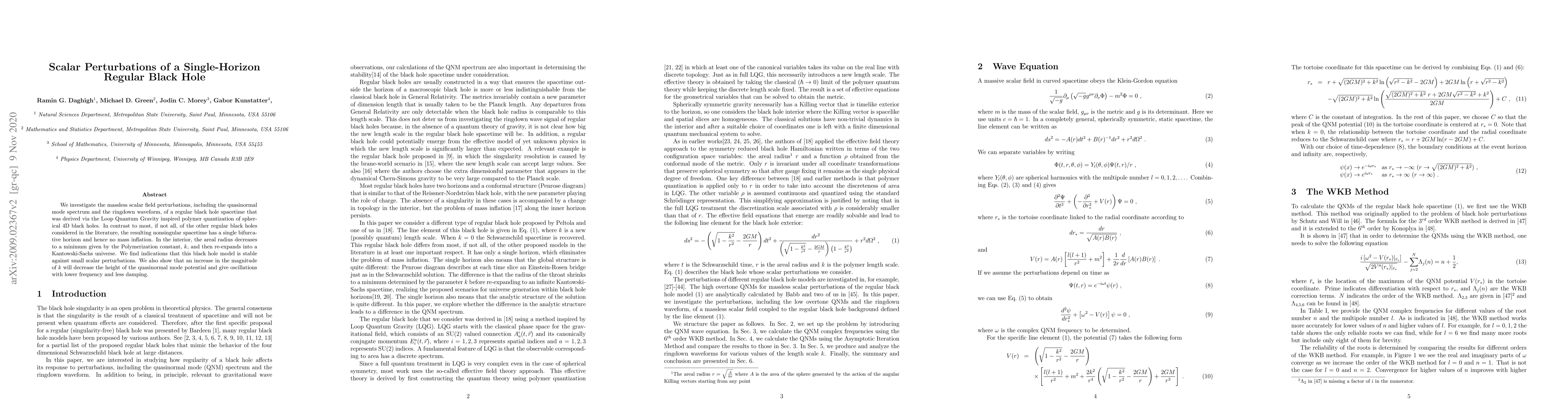 We investigate the massless scalar field perturbations, including the quasinormal mode spectrum and the ringdown waveform, of a regular black hole spacetime that was derived via the Loop Quantum Gravity inspired polymer quantization of spherical $4$D black holes. In contrast to most, if not all, of the other regular black holes considered in the literature, the resulting nonsingular spacetime has a single bifurcative horizon and hence no mass inflation. In the interior, the areal radius decreases to a minimum given by the Polymerization constant, $k$, and then re-expands into a Kantowski-Sachs universe. We find indications that this black hole model is stable against small scalar perturbations. We also show that an increase in the magnitude of $k$ will decrease the height of the QNM potential and gives oscillations with lower frequency and less damping.