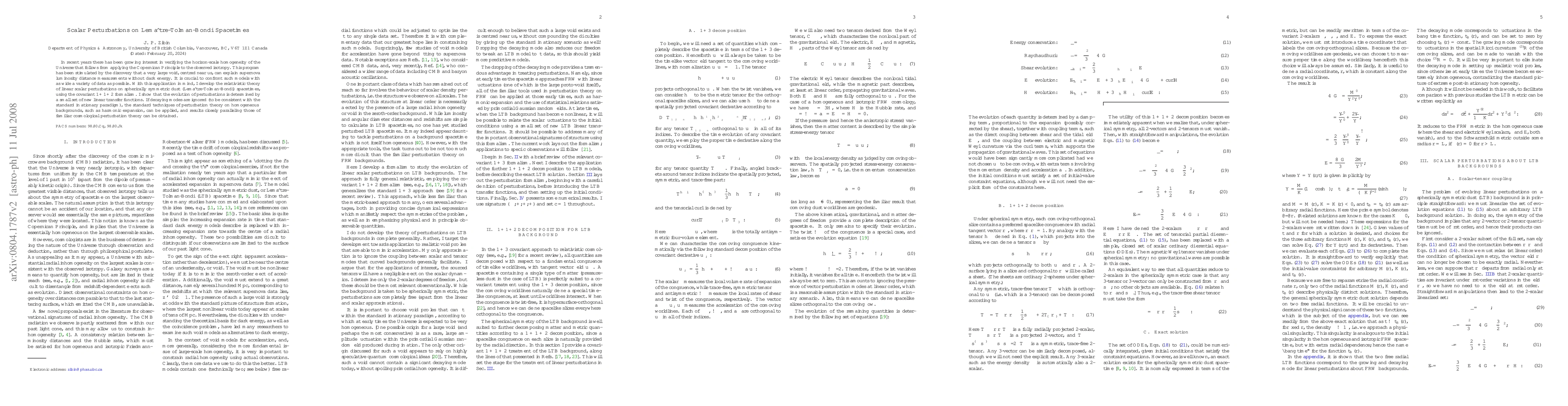 This paper develops a relativistic theory for linear scalar perturbations on Lemaitre-Tolman-Bondi spacetimes, aiming to verify the horizon-scale homogeneity of the universe. It introduces new linear transfer functions to determine the evolution of perturbations, showing results paralleling standard cosmological perturbation theory when decaying modes are ignored.