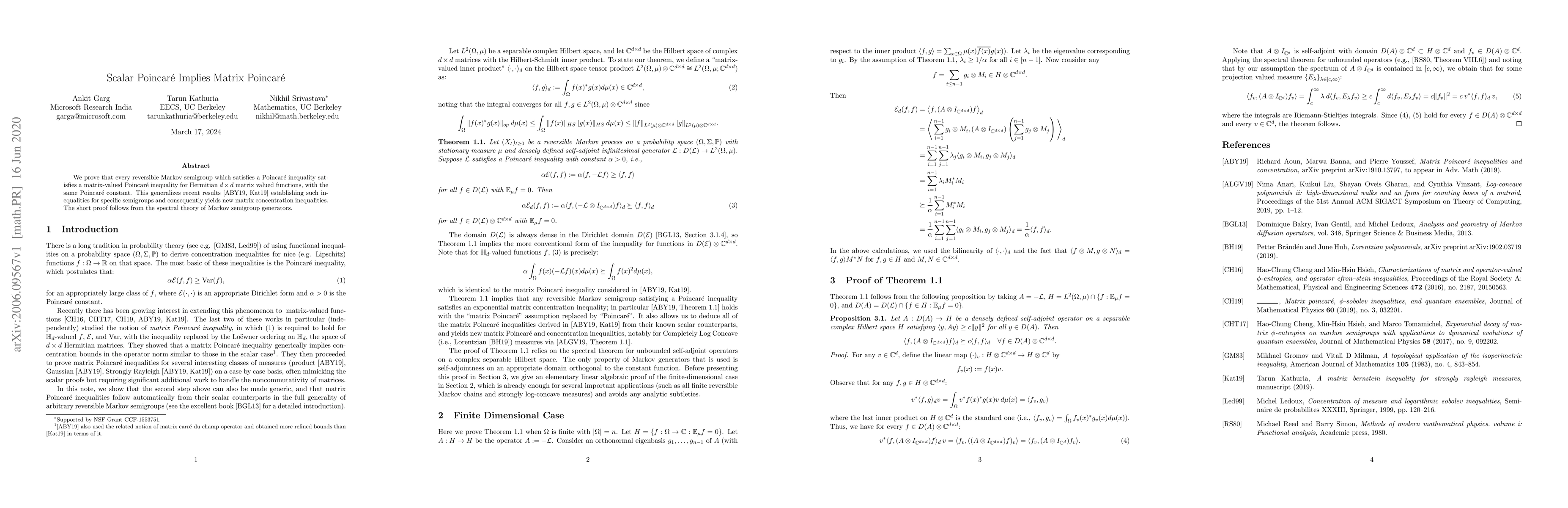 Summary: This paper proves that any reversible Markov semigroup fulfilling a scalar Poincaré inequality also satisfies a matrix-valued Poincaré inequality for Hermitian matrices, preserving the same inequality constant. This generalizes existing results and provides new matrix concentration inequalities using spectral theory.