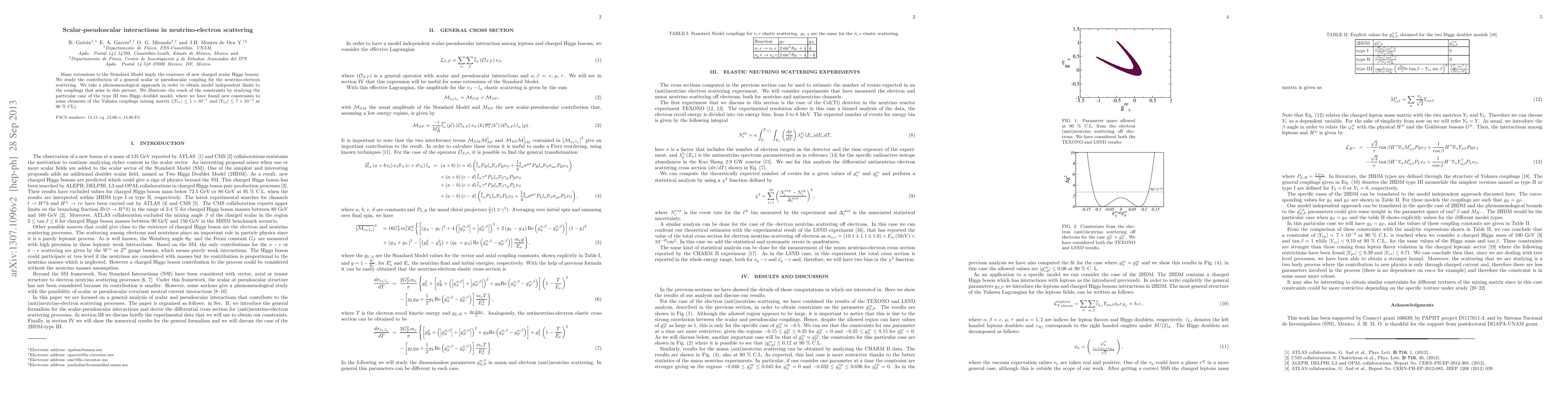 Many extensions to the Standard Model imply the existence of new charged scalar Higgs bosons. We study the contribution of a general scalar or pseudoscalar coupling for the neutrino-electron scattering. We take a phenomenological approach in order to obtain model independent limits to the couplings that arise in this picture. We illustrate the reach of the constraints by studying the particular case of the type III two Higgs doublet model, where we have found new constraints to some elements of the Yukawa couplings mixing matrix ($|Y_{ee}| \leq 1 \times 10^{-1}$ and $|Y_{e\mu}| \leq 7\times10^{-2}$ at 90% CL).