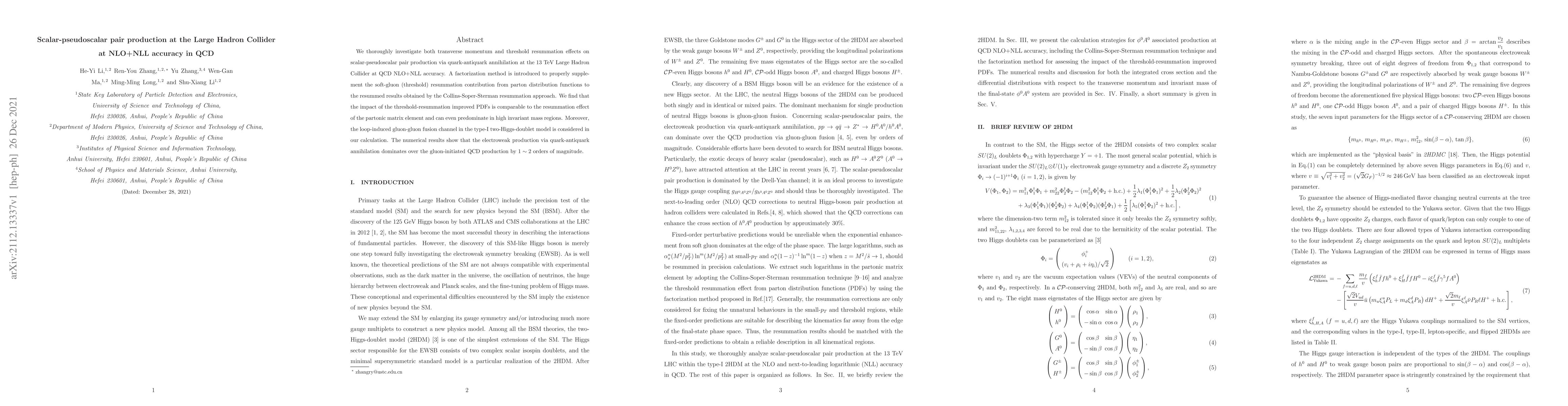 This research meticulously examines scalar-pseudoscalar pair production at the LHC, incorporating NLO+NLL QCD accuracy, transverse momentum, and threshold resummation. A novel factorization method merges soft-gluon resummation from PDFs with the Collins-Soper-Sterman approach. The study reveals that threshold-resummation improved PDFs significantly impact resummation results, especially in high invariant mass regions, and that electroweak production via quark-antiquark annihilation dominates over gluon-initiated QCD production by 1-2 orders of magnitude.