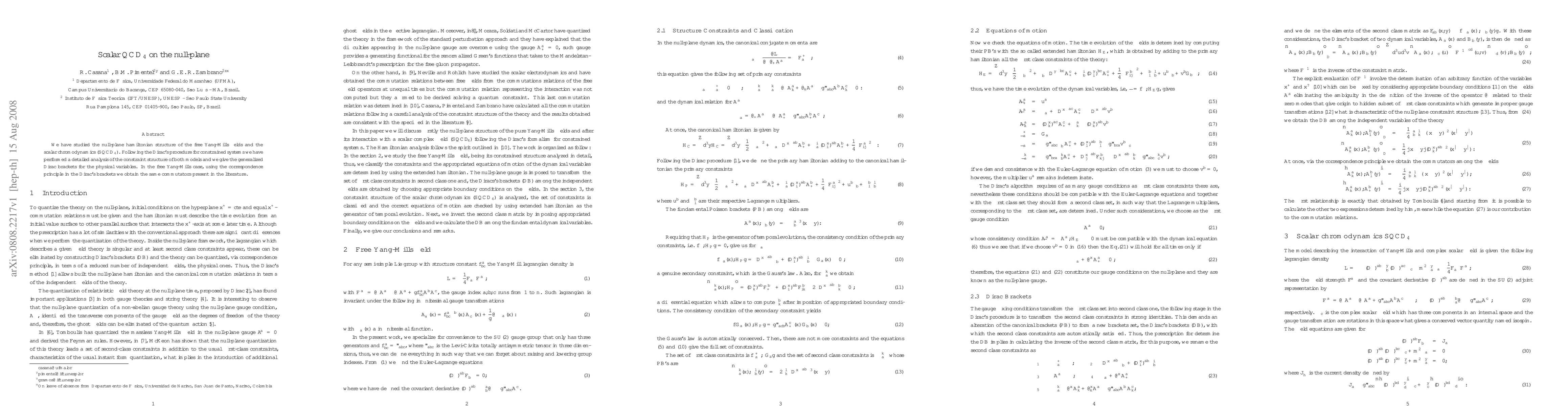 We have studied the null-plane hamiltonian structure of the free Yang-Mills fields and the scalar chromodynamics ($SQCD_{4}$). Following the Dirac's procedure for constrained systems we have performed a detailed analysis of the constraint structure of both models and we give the generalized Dirac brackets for the physical variables. In the free Yang-Mills case, using the correspondence principle in the Dirac's brackets we obtain the same commutators present in the literature.