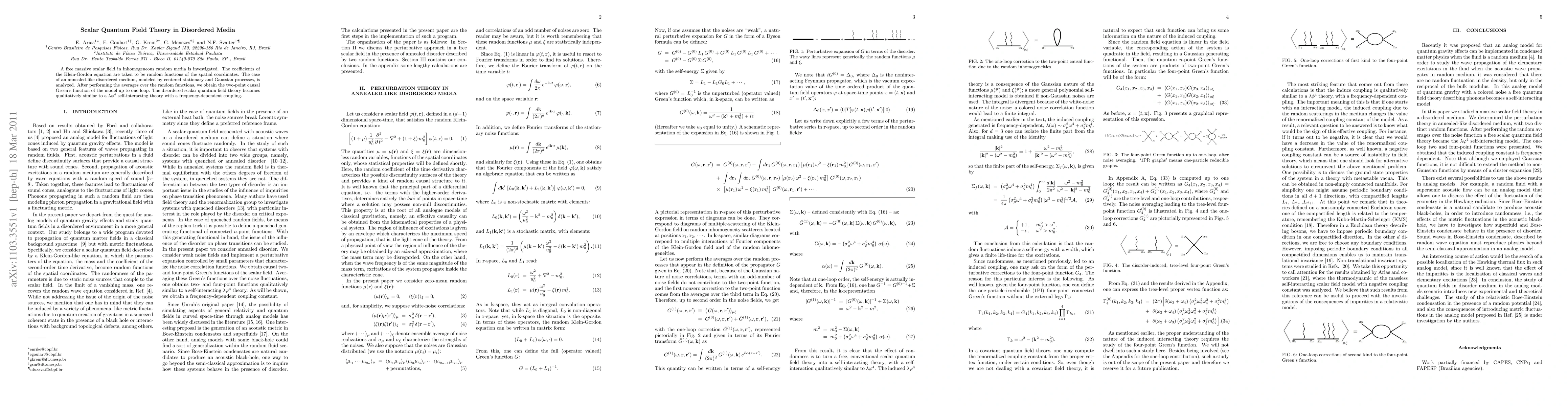 This paper investigates the behavior of a free massive scalar field in a disordered medium where spatial coefficients are random functions. By averaging over these random functions, the authors derive the two-point causal Green's function up to one-loop, revealing a resemblance to a $\lambda\phi^{4}$ self-interacting theory with a frequency-dependent coupling.