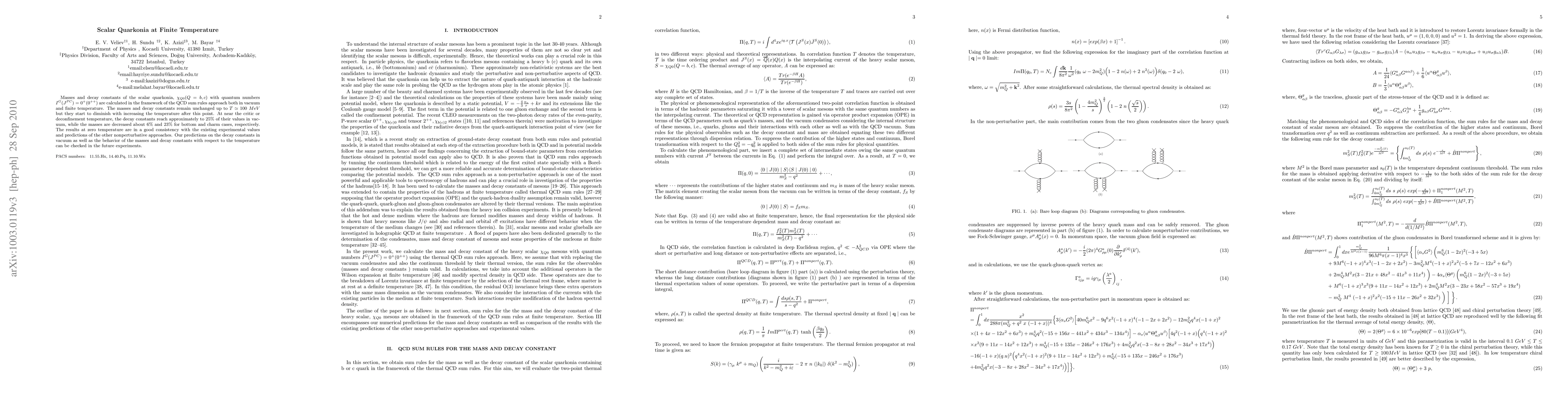 Masses and decay constants of the scalar quarkonia, $\chi_{Q0} (Q=b,c)$ with quantum numbers $I^G(J^{PC})=0^{+}(0^{++})$ are calculated in the framework of the QCD sum rules approach both in vacuum and finite temperature. The masses and decay constants remain unchanged up to $T\simeq100~MeV$ but they start to diminish with increasing the temperature after this point. At near the critic or deconfinement temperature, the decay constants reach approximately to 25% of their values in vacuum, while the masses are decreased about 6% and 23% for bottom and charm cases, respectively. The results at zero temperature are in a good consistency with the existing experimental values and predictions of the other nonperturbative approaches. Our predictions on the decay constants in vacuum as well as the behavior of the masses and decay constants with respect to the temperature can be checked in the future experiments.