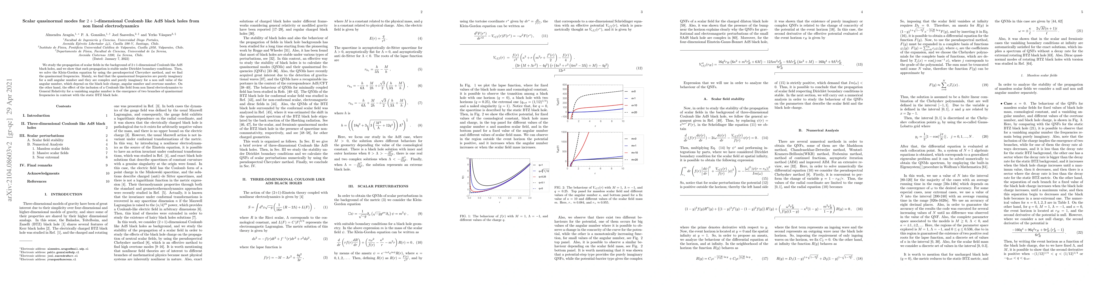 We study the propagation of scalar fields in the background of $2+1$-dimensional Coulomb like AdS black holes, and we show that such propagation is stable under Dirichlet boundary conditions. Then, we solve the Klein-Gordon equation by using the pseudospectral Chevyshev method, and we find the quasinormal frequencies. Mainly, we find that the quasinormal frequencies are purely imaginary for a null angular number and they are complex and purely imaginary for a non null value of the angular number, which depend on the black hole charge, angular number and overtone number. On the other hand, the effect of the inclusion of a Coulomb like field from non lineal electrodynamics to General Relativity for a vanishing angular number is the emergence of two branches of quasinormal frequencies in contrast with the static BTZ black hole.