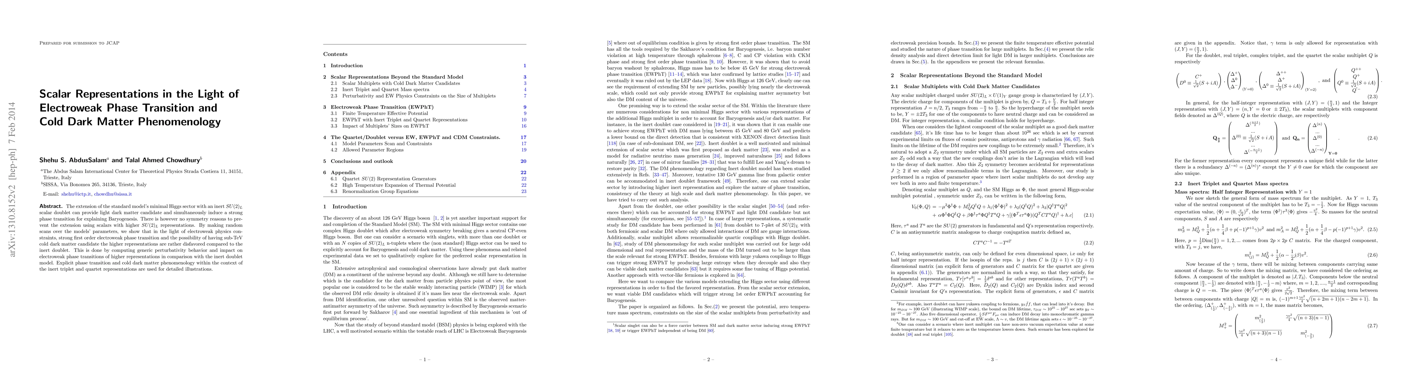 The extension of the standard model's minimal Higgs sector with an inert $SU(2)_L$ scalar doublet can provide light dark matter candidate and simultaneously induce a strong phase transition for explaining Baryogenesis. There is however no symmetry reasons to prevent the extension using scalars with higher $SU(2)_L$ representations. By making random scans over the models' parameters, we show that in the light of electroweak physics constraints, strong first order electroweak phase transition and the possibility of having sub-TeV cold dark matter candidate the higher representations are rather disfavored compared to the inert doublet. This is done by computing generic perturbativity behavior and impact on electroweak phase transitions of higher representations in comparison with the inert doublet model. Explicit phase transition and cold dark matter phenomenology within the context of the inert triplet and quartet representations are used for detailed illustrations.