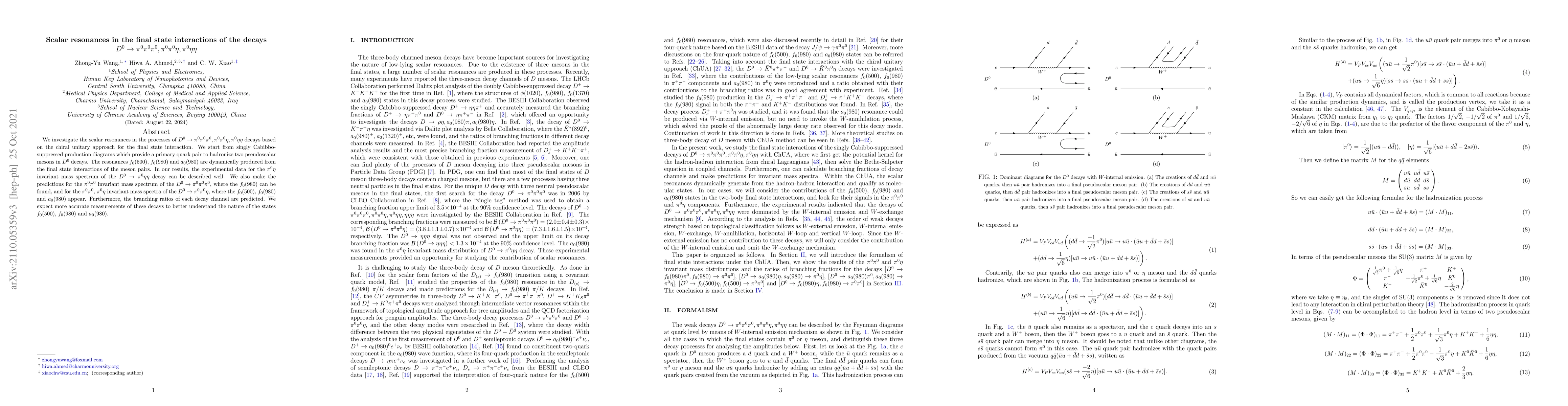 Understanding the nature of scalar resonances f0(500), f0(980), and a0(980) is crucial, and more accurate measurements of these decays can contribute to this understanding.
