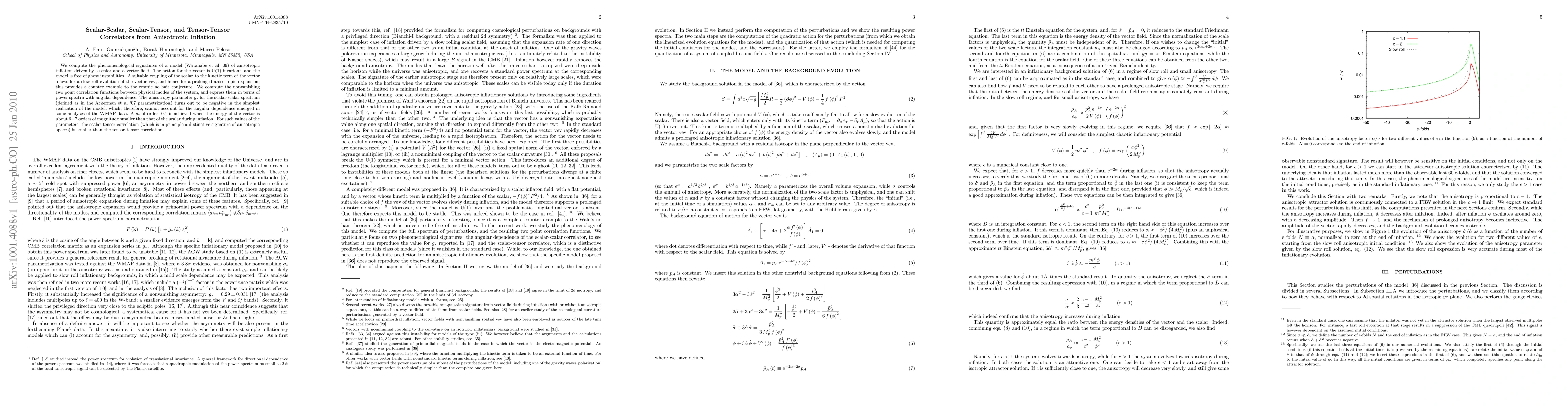 This paper investigates anisotropic inflation driven by a scalar and a vector field, computing the resulting scalar-scalar, scalar-tensor, and tensor-tensor correlation functions. The model avoids ghost instabilities and provides a counterexample to the cosmic no hair conjecture, resulting in a negative anisotropy parameter that cannot explain the angular dependence observed in WMAP data.