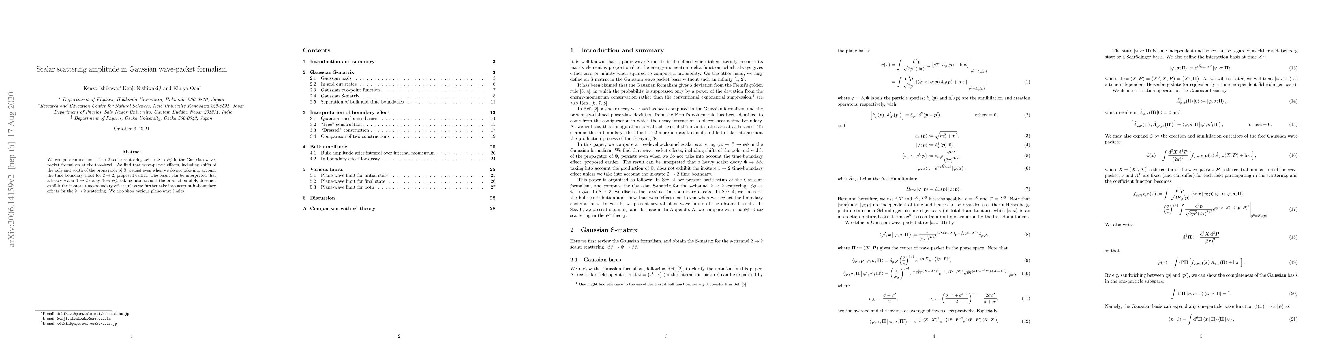 This paper calculates the $s$-channel $2\to2$ scalar scattering $\phi\phi\to\Phi\to\phi\phi$ in the Gaussian wave-packet formalism, revealing persistent wave-packet effects on the propagator's pole and width. It concludes that the heavy scalar decay $\Phi\to\phi\phi$ does not show time-boundary effects unless in-boundary effects for $2\to2$ scattering are considered.