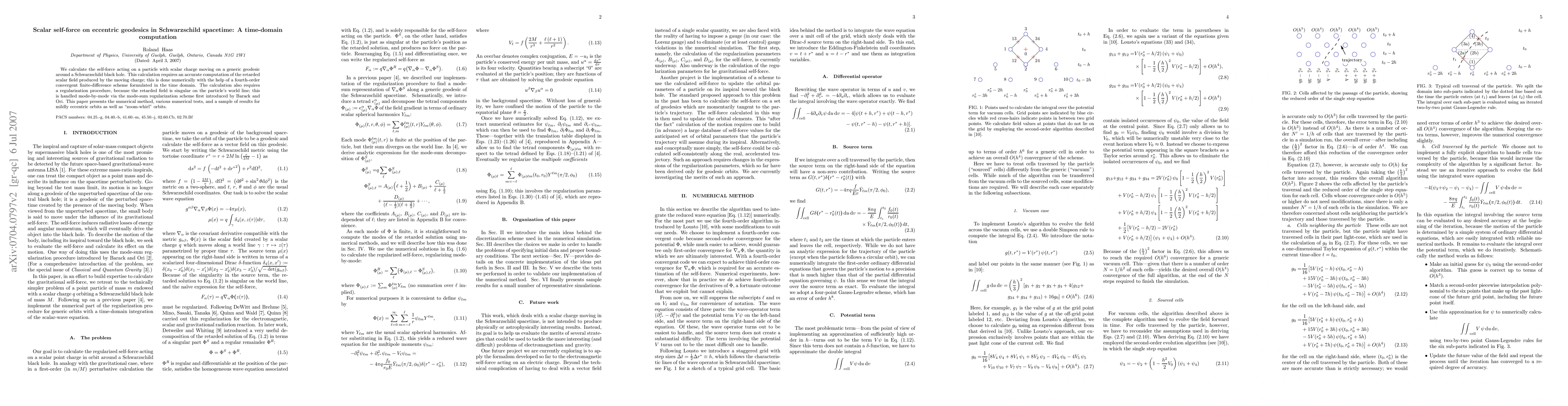 We calculate the self-force acting on a particle with scalar charge moving on a generic geodesic around a Schwarzschild black hole. This calculation requires an accurate computation of the retarded scalar field produced by the moving charge; this is done numerically with the help of a fourth-order convergent finite-difference scheme formulated in the time domain. The calculation also requires a regularization procedure, because the retarded field is singular on the particle's world line; this is handled mode-by-mode via the mode-sum regularization scheme first introduced by Barack and Ori. This paper presents the numerical method, various numerical tests, and a sample of results for mildly eccentric orbits as well as ``zoom-whirl'' orbits.
