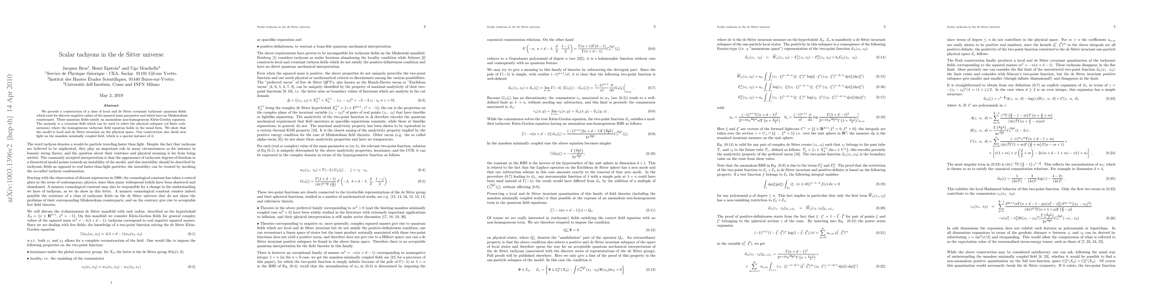 This paper constructs tachyonic quantum fields in a de Sitter universe, which are local, covariant, and exhibit a unique non-homogeneous Klein-Gordon equation anomaly. The anomaly selects a physical subspace where the usual tachyonic field equation applies, demonstrating local and de Sitter invariance.