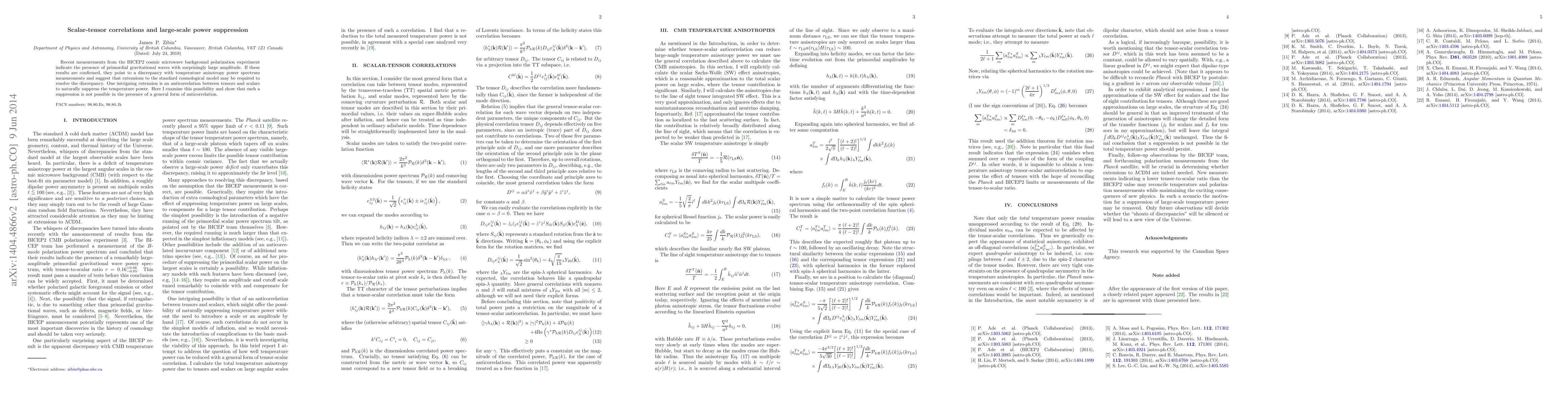This work extends previous research by explicitly analyzing the impossibility of suppressing large-scale temperature power through anticorrelations between tensors and scalars, highlighting the limitations of using such correlations to reconcile discrepancies between temperature and polarization measurements.