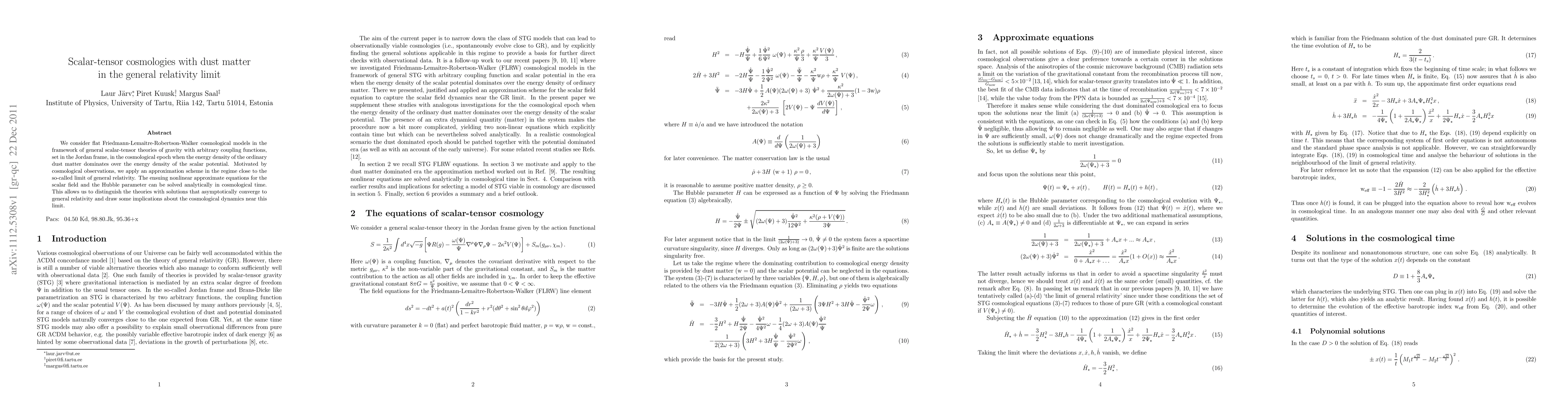 This paper investigates flat Friedmann-Lemaître-Robertson-Walker cosmological models within scalar-tensor gravity theories, focusing on the general relativity limit where dust matter dominates. It derives and solves nonlinear equations analytically to examine theories converging to general relativity and their implications for cosmological dynamics.