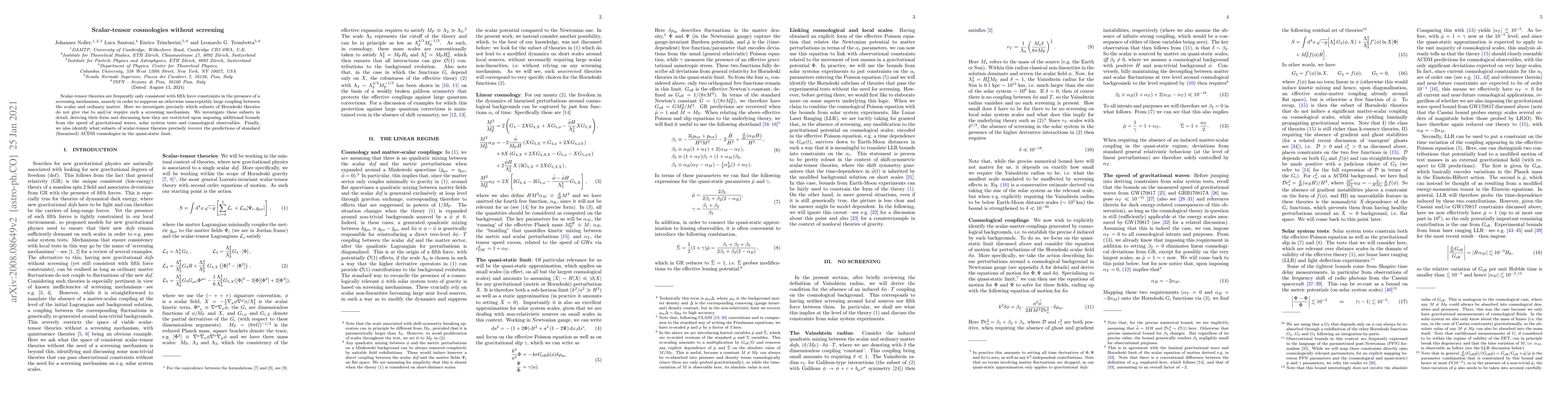 This paper explores subsets of Horndeski scalar-tensor theories that do not necessitate screening mechanisms to suppress fifth forces, detailing their forms and constraints from gravitational wave speeds, solar system tests, and cosmological observations. It also identifies which subsets align with standard ΛCDM cosmology predictions in the quasi-static limit.