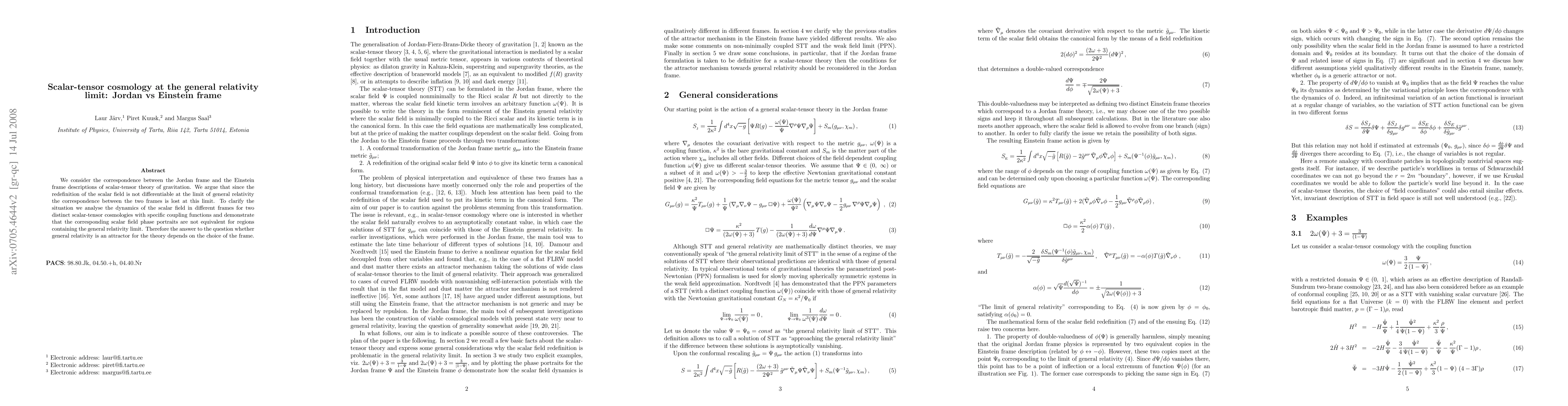 Title: Scalar-tensor cosmology at the general relativity limit: Jordan vs Einstein frame Summary: The study investigates the equivalence between Jordan and Einstein frames in scalar-tensor theories of gravitation, finding that the scalar field's redefinition causes a loss of correspondence at the general relativity limit, leading to differing dynamics and scalar field behavior in these frames.