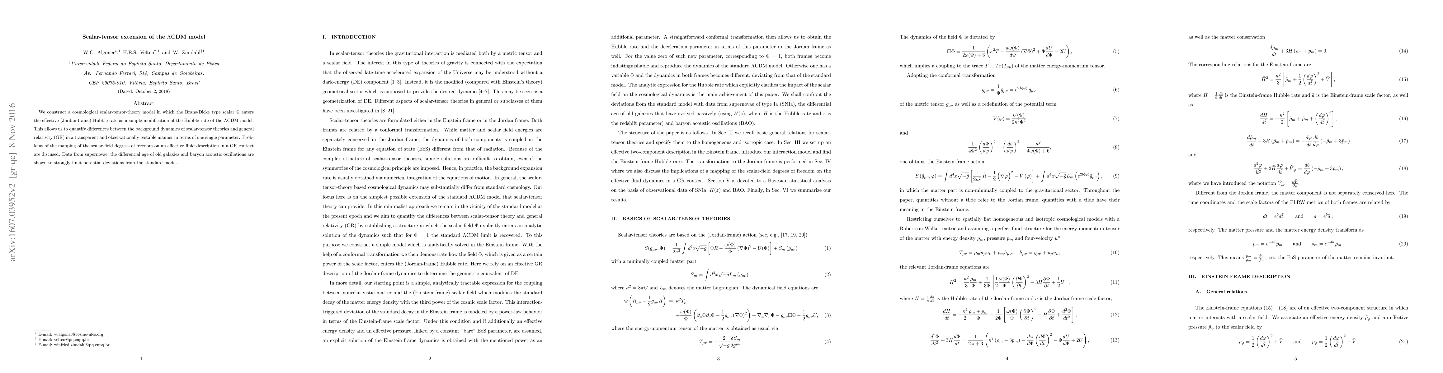 A new cosmological model combines the LambdaCDM framework with a scalar-tensor theory, allowing for clear testing of its predictions against observations such as supernovae and galaxy age differences.