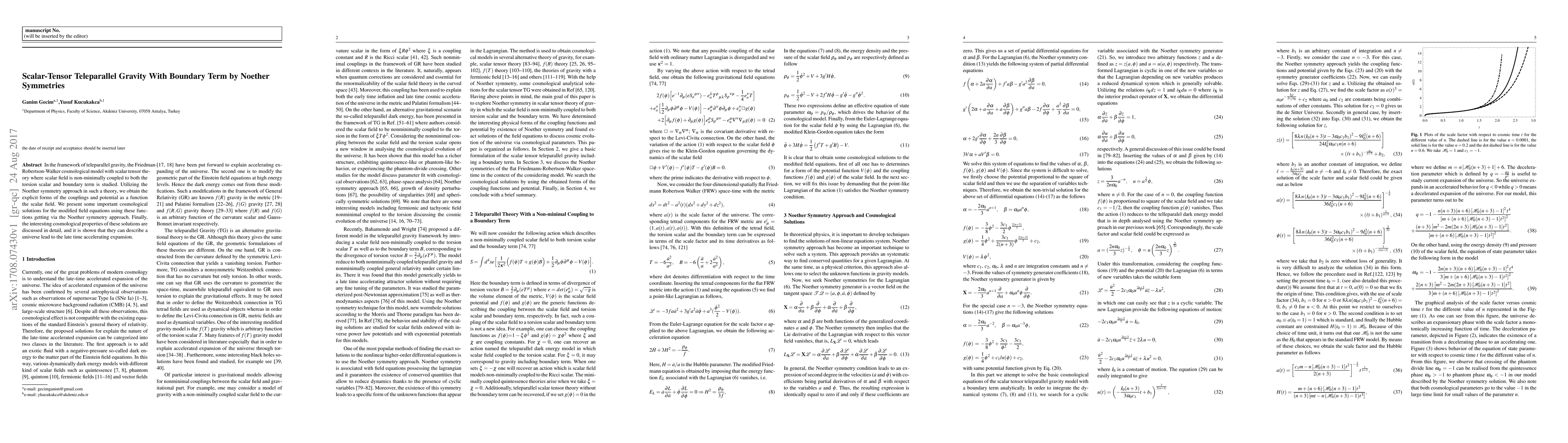 This paper explores a scalar-tensor teleparallel gravity model with a non-minimally coupled scalar field and boundary term, utilizing the Noether symmetry approach to derive explicit forms of couplings and potential. It presents cosmological solutions that describe a universe with late-time accelerating expansion.