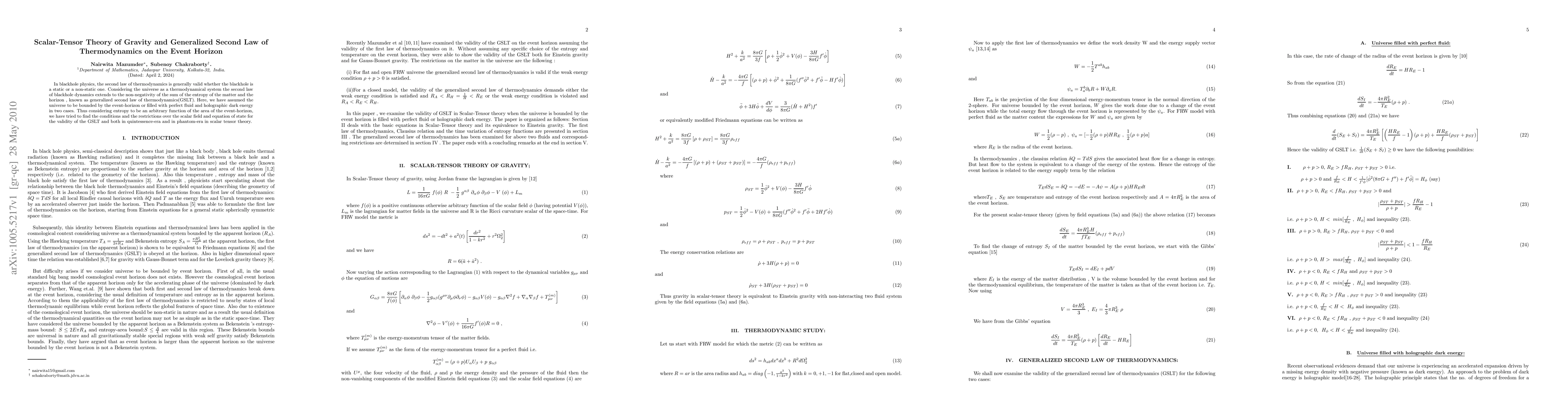 This paper explores the generalized second law of thermodynamics in scalar-tensor theory of gravity, focusing on the event horizon's entropy. It examines conditions for the non-negativity of the combined entropy of matter and the horizon in both quintessence and phantom eras, considering the universe's boundary or content as a perfect fluid or holographic dark energy.