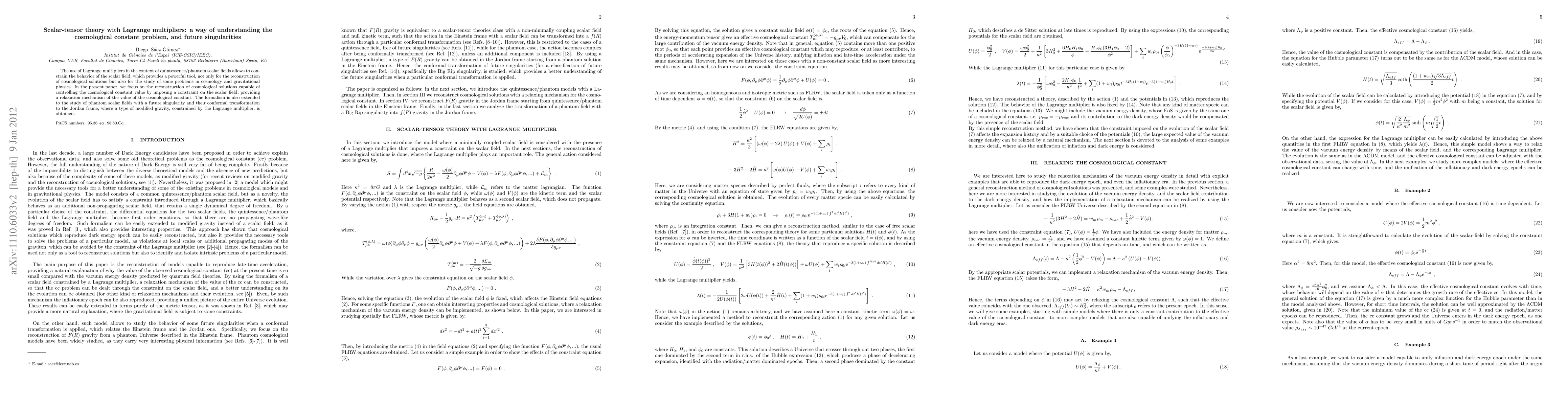 This paper employs Lagrange multipliers to constrain scalar fields in scalar-tensor theories, offering a method to control the cosmological constant and exploring solutions that address the cosmological constant problem and future singularities in phantom scalar fields. The study extends to modified gravity frameworks in the Jordan frame.