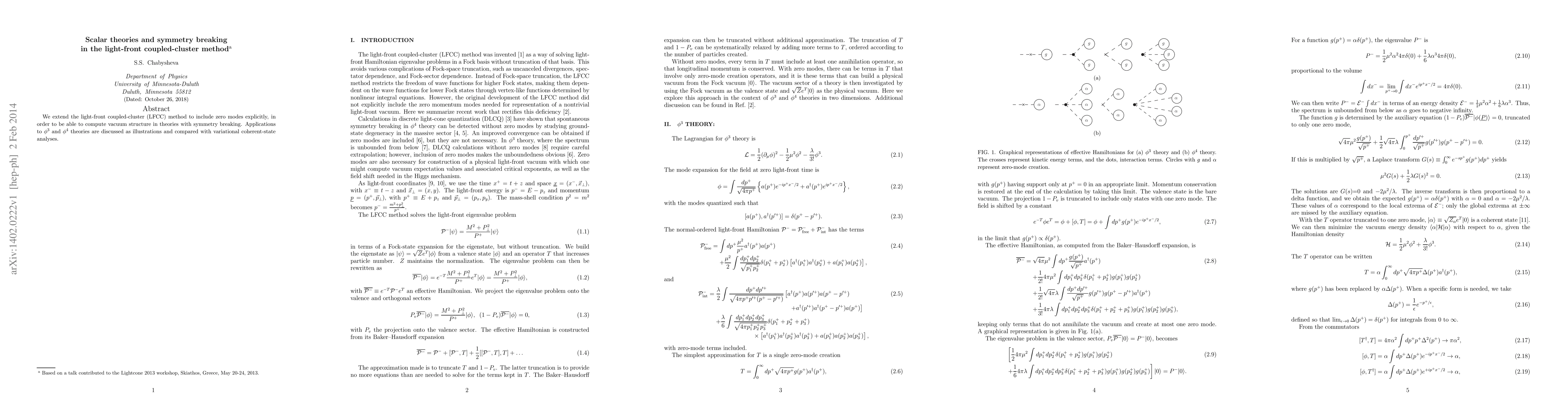 We extend the light-front coupled-cluster (LFCC) method to include zero modes explicitly, in order to be able to compute vacuum structure in theories with symmetry breaking. Applications to phi^3 and phi^4 theories are discussed as illustrations and compared with variational coherent-state analyses.