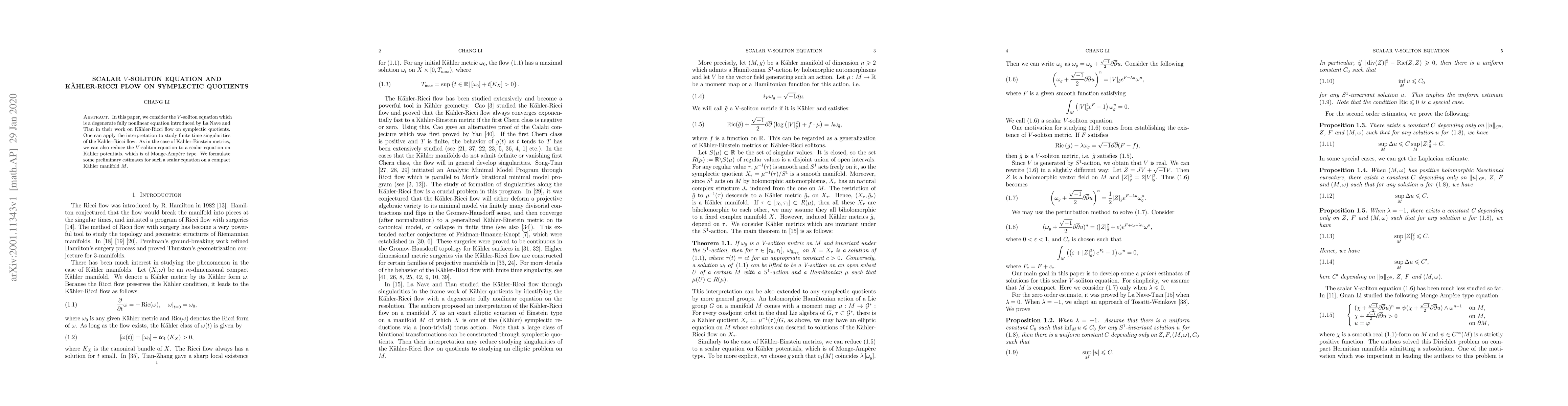 This paper investigates the $V$-soliton equation, a degenerate nonlinear equation relevant to Kähler-Ricci flow on symplectic quotients, and reduces it to a Monge-Ampère type scalar equation on Kähler potentials. Preliminary estimates for this scalar equation on compact Kähler manifolds are formulated.