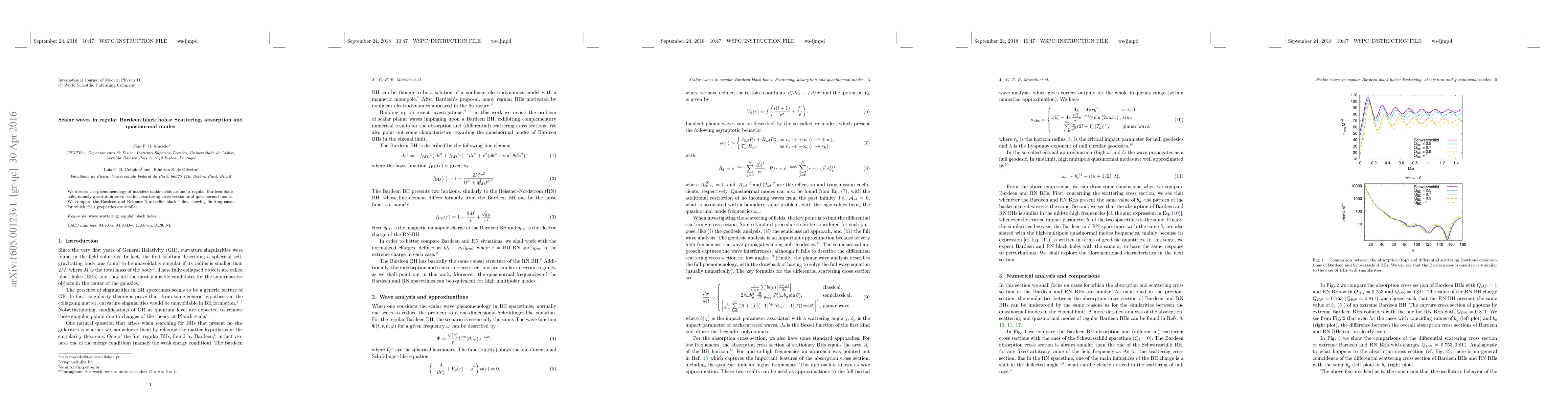 This paper investigates massless scalar fields around a regular Bardeen black hole, focusing on absorption and scattering cross sections, as well as the quasinormal modes, and compares these properties with those of Reissner-Nordström black holes, highlighting their similarities in certain limiting cases.