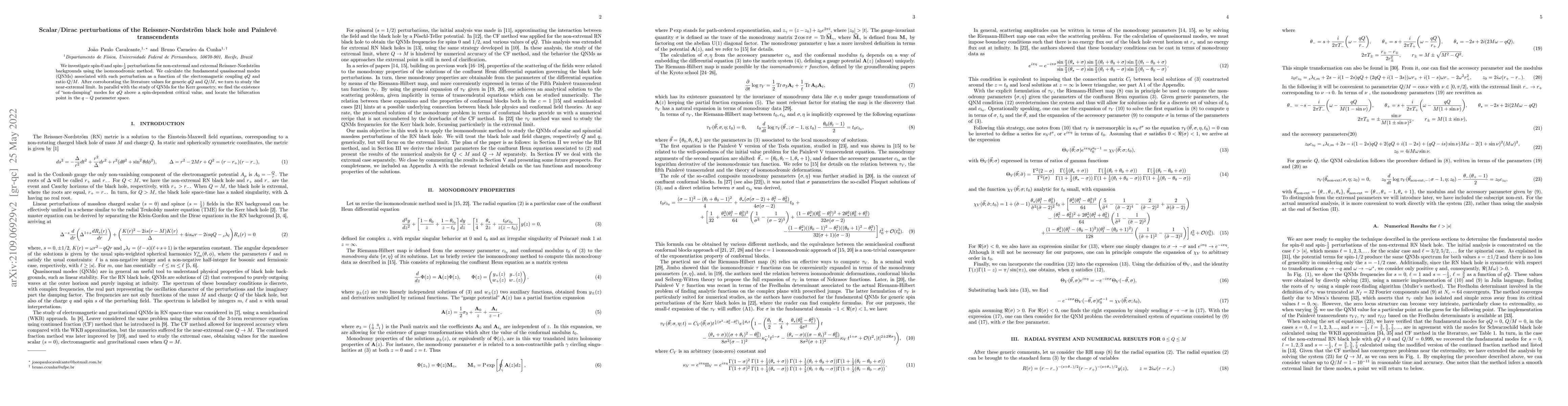 This research investigates perturbations of Reissner-Nordstr"om black holes for spin-0 and spin-rac{1}{2} cases, finding non-damping modes in the near-extremal limit and a bifurcation point in the parameter space.
