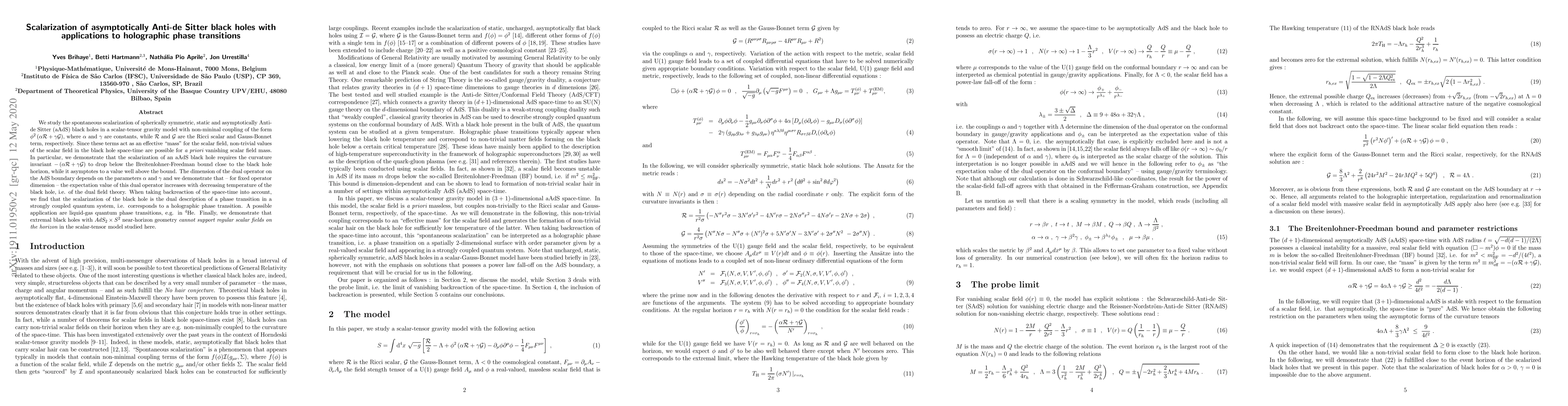 Researchers study how a specific type of black hole can 'scalarize' in certain conditions, leading to a phase transition in a quantum system, with potential applications in understanding liquid-gas transitions.