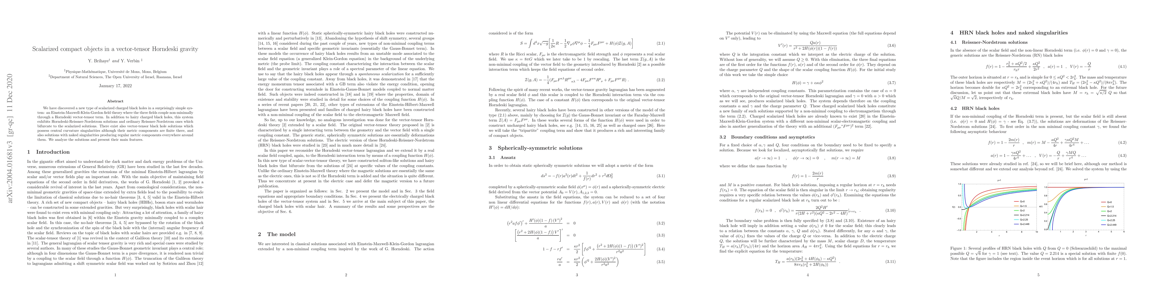 We have discovered a new type of scalarized charged black holes in a surprisingly simple system: an Einstein-Maxwell-Klein-Gordon field theory where the three fields couple non-minimally through a Horndeski vector-tensor term. In addition to hairy charged black holes, this system exhibits Horndeski-Reissner-Nordstrom solutions and ordinary Reissner-Nordstrom ones which bifurcate to the scalarized solutions. There exist also vector-tensor black hole solutions which possess central curvature singularities although their metric components are finite there, and also solutions with naked singularities producing regular metric components everywhere around them. We analyze the solutions and present their main features.