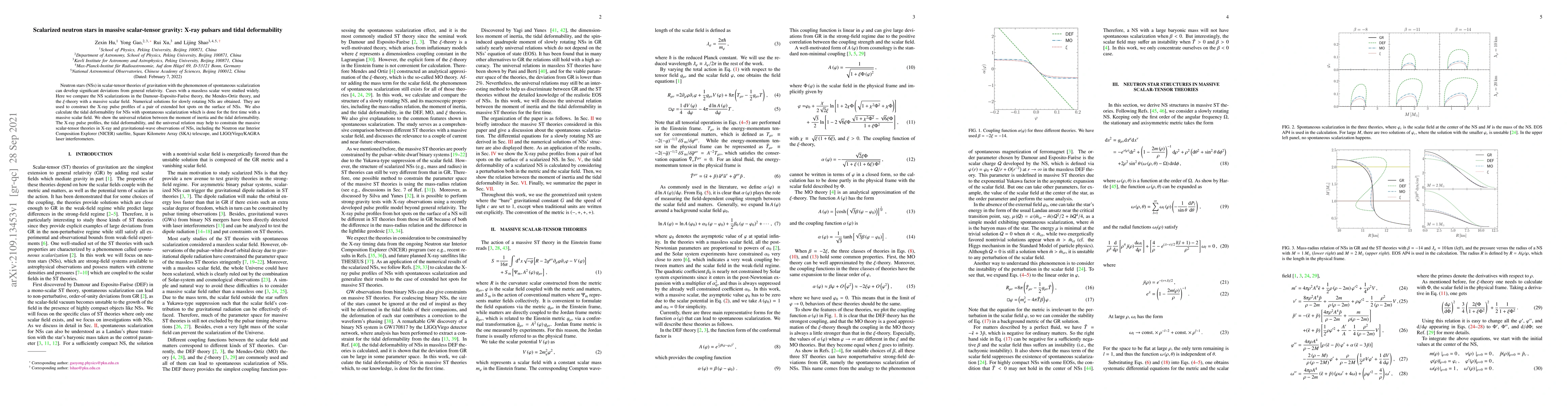 This paper investigates neutron stars in massive scalar-tensor gravity theories, focusing on scalarization phenomena and comparing three specific theories. It derives X-ray pulse profiles and calculates tidal deformability for scalarized neutron stars, aiming to constrain these theories through future observations.
