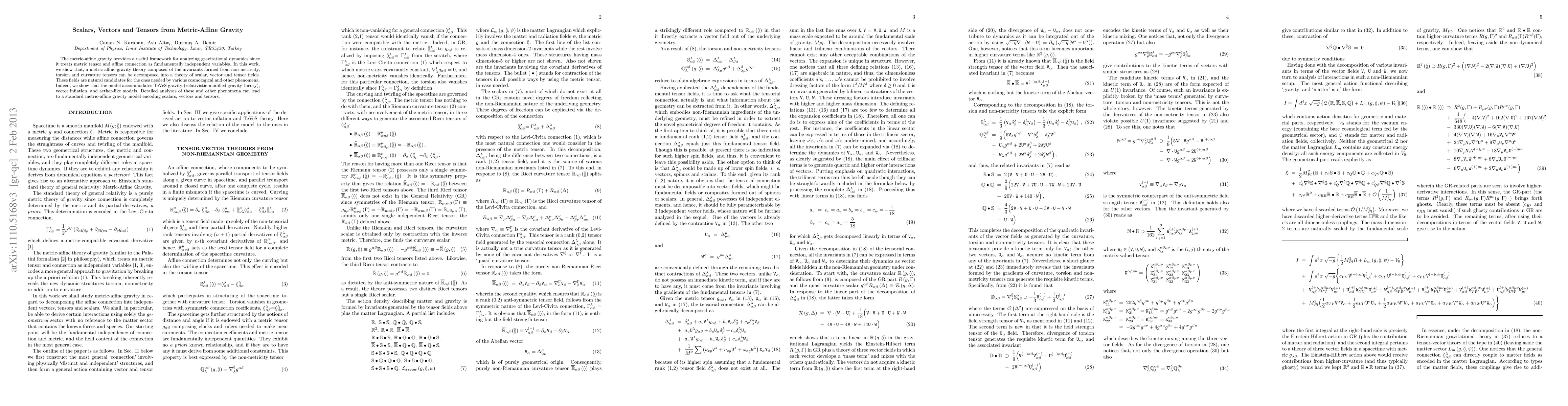 The metric-affine gravity provides a useful framework for analyzing gravitational dynamics since it treats metric tensor and affine connection as fundamentally independent variables. In this work, we show that, a metric-affine gravity theory composed of the invariants formed from non-metricity, torsion and curvature tensors can be decomposed into a theory of scalar, vector and tensor fields. These fields are natural candidates for the ones needed by various cosmological and other phenomena. Indeed, we show that the model accommodates TeVeS gravity (relativistic modified gravity theory), vector inflation, and aether-like models. Detailed analyses of these and other phenomena can lead to a standard metric-affine gravity model encoding scalars, vectors and tensors.