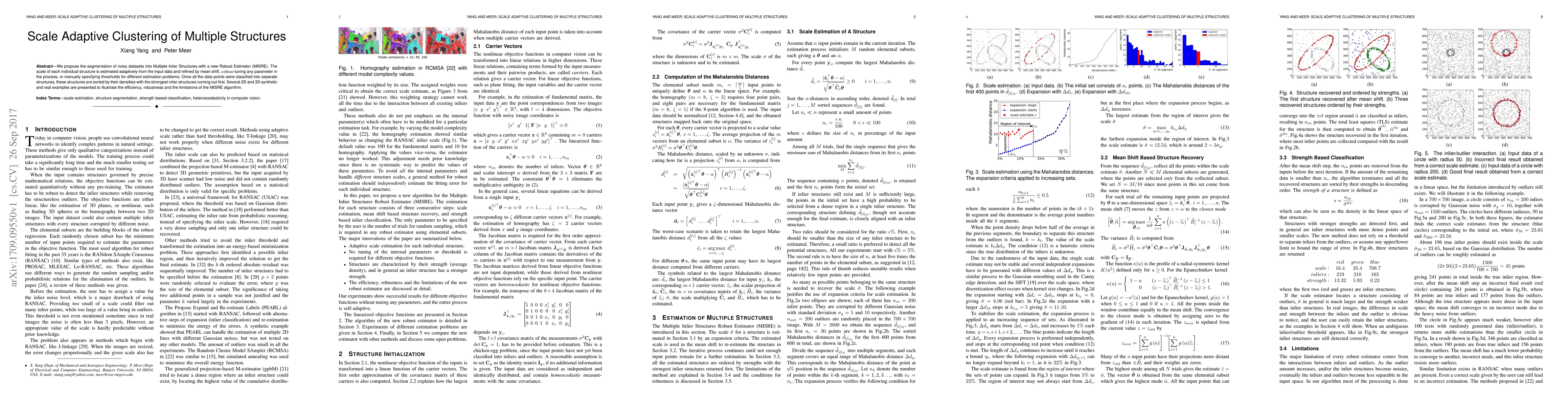 We propose the segmentation of noisy datasets into Multiple Inlier Structures with a new Robust Estimator (MISRE). The scale of each individual structure is estimated adaptively from the input data and refined by mean shift, without tuning any parameter in the process, or manually specifying thresholds for different estimation problems. Once all the data points were classified into separate structures, these structures are sorted by their densities with the strongest inlier structures coming out first. Several 2D and 3D synthetic and real examples are presented to illustrate the efficiency, robustness and the limitations of the MISRE algorithm.