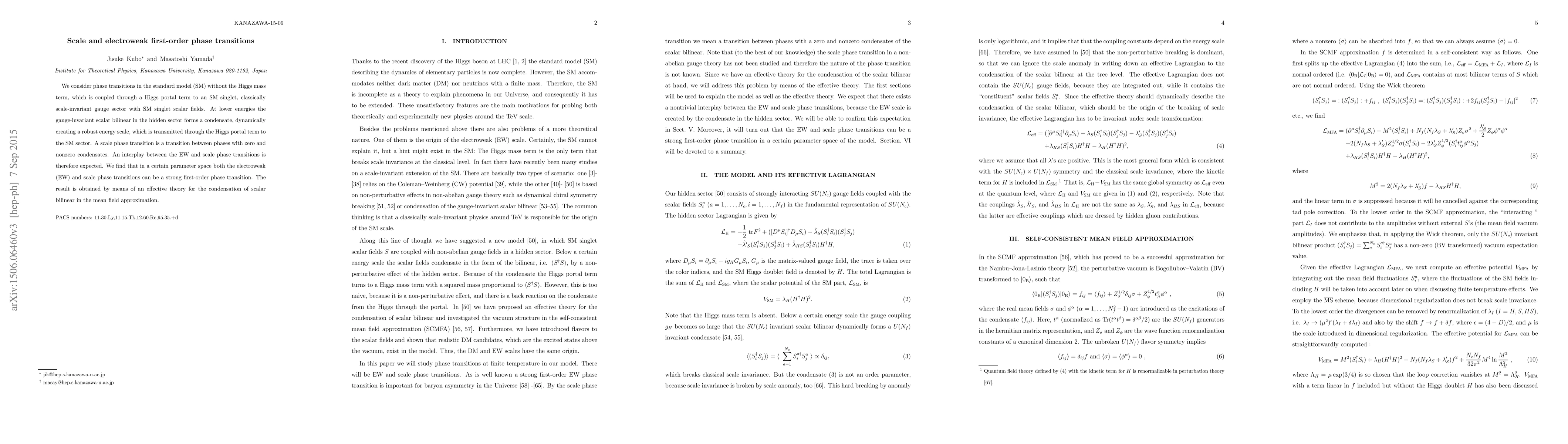 This paper explores phase transitions in the Standard Model without the Higgs mass term, focusing on a classically scale-invariant gauge sector linked to the SM via a Higgs portal. It finds that both electroweak and scale phase transitions can be strong first-order under certain conditions, using an effective theory and mean field approximation.