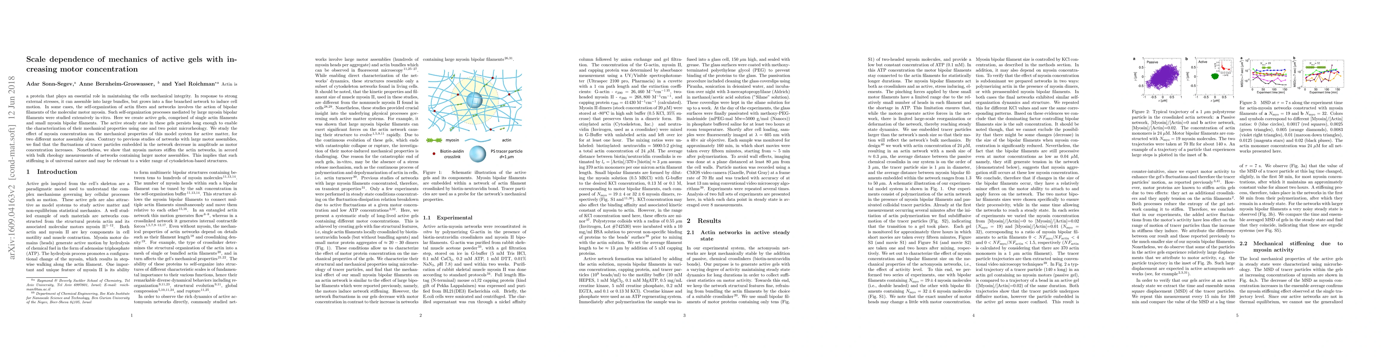 The cytoskeleton protein actin assembles into large bundles when supporting stresses in the cell, but grows into a fine branched network to induce cell motion. Such self-organization processes are studied in artificial networks of cytoskeleton proteins with thick actin bundles and large motor protein aggregates to enable optical observation. The effect of motor aggregate size on the cytoskeleton mechanical properties is studied here in networks comprised of much smaller motor assemblies. Large motor protein clusters are known to increase the stiffness of actin based networks by introducing tension and additional cross-linking cites. We find that these effects are universal to actin gels regardless of actin bundle thickness and motor aggregate size and are relevant, therefore, to a wide range of cytoskeleton based cellular processes. In contrast, motor induced active fluctuations depend significantly on motor assembly size, featuring unique non-Gaussian statistics at high concentrations of small assemblies.