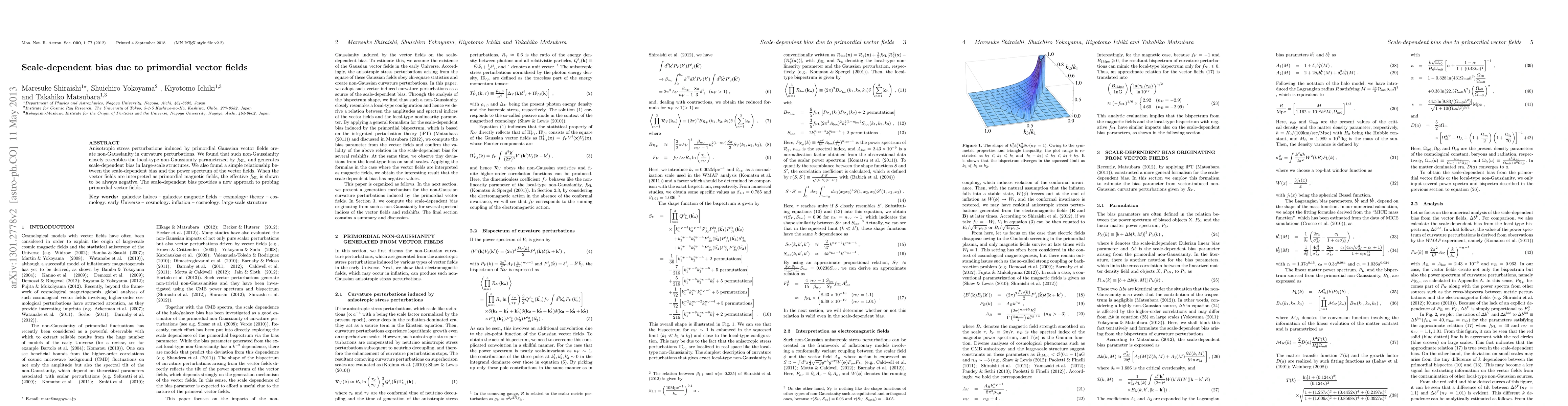 This paper investigates non-Gaussianity in curvature perturbations caused by primordial Gaussian vector fields, revealing a local-type non-Gaussianity and scale-dependent bias in large-scale structures. It establishes a relationship between the bias and the power spectrum of the vector fields, suggesting a new method to probe primordial vector fields, including primordial magnetic fields.