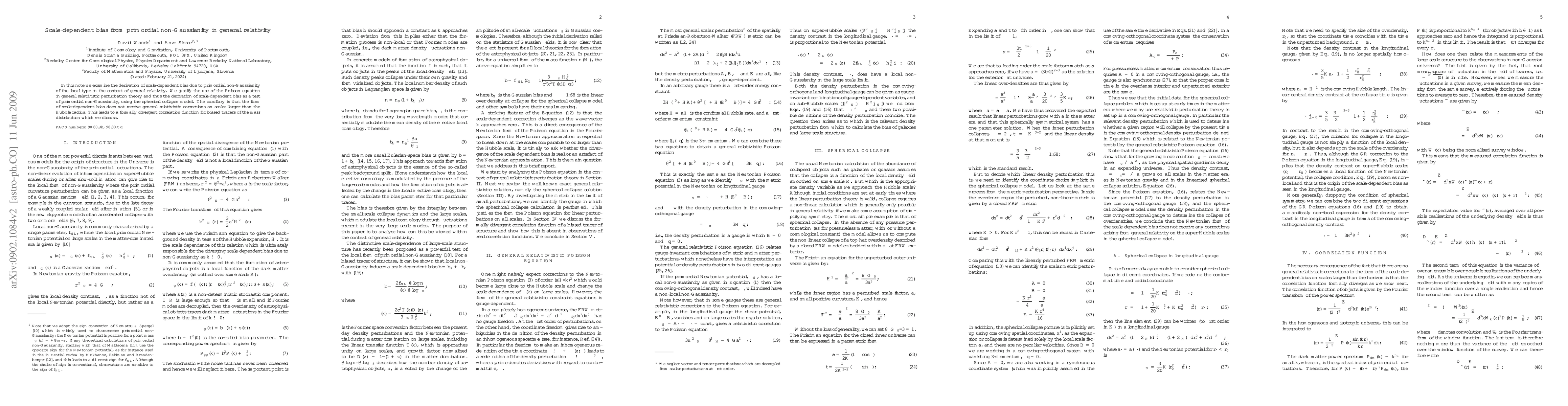 This paper explores the derivation of scale-dependent bias from primordial non-Gaussianity in general relativity, justifying the use of the Poisson equation in relativistic perturbation theory. It concludes that scale-dependent bias retains its form without general relativistic corrections on scales larger than the Hubble radius, leading to a divergent correlation function for mass distribution tracers.