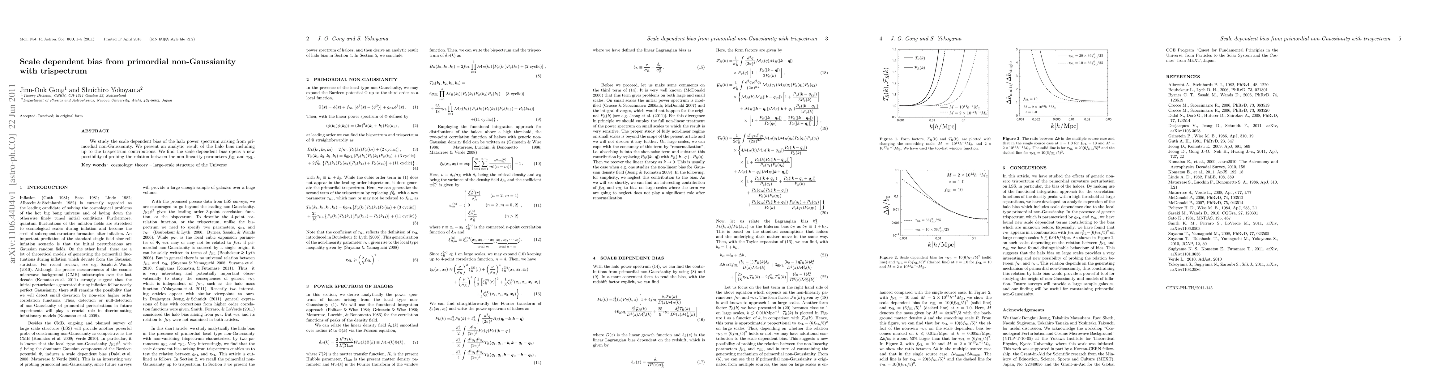 This paper investigates the scale-dependent bias in the halo power spectrum due to primordial non-Gaussianity, presenting an analytic model that incorporates trispectrum contributions. The findings suggest a new method to explore the relationship between non-linearity parameters $\fnl$ and $\tnl$.