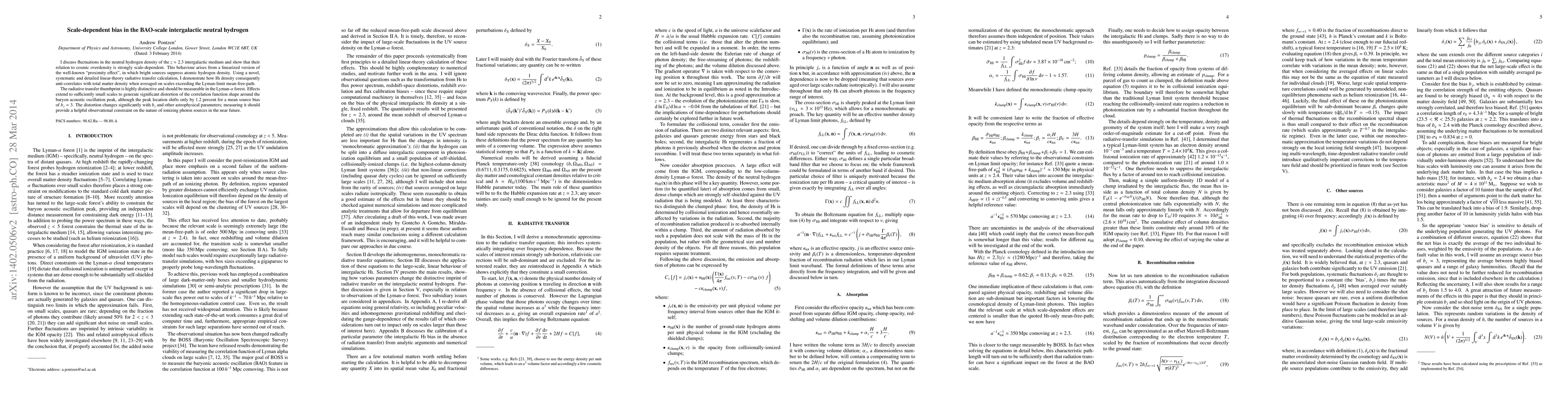 I discuss fluctuations in the neutral hydrogen (HI) density of the z~2.3 intergalactic medium and show that their relation to cosmic overdensity is strongly scale-dependent. This behaviour arises from a linearized version of the well-known "proximity effect", in which bright sources suppress atomic hydrogen density. Using a novel, systematic and detailed linear-theory radiative transfer calculation, I demonstrate how HI density consequently anti-correlates with total matter density when averaged on scales exceeding the Lyman-limit mean-free-path. The radiative transfer thumbprint is highly distinctive and should be measurable in the Lyman-alpha forest. Effects extend to sufficiently small scales to generate significant distortion of the correlation function shape around the baryon acoustic oscillation peak, although the peak location shifts only by 1.2 percent for a mean source bias of b_j=3. The distortion changes significantly with b_j and other astrophysical parameters; measuring it should provide a helpful observational constraint on the nature of ionizing photon sources in the near future.